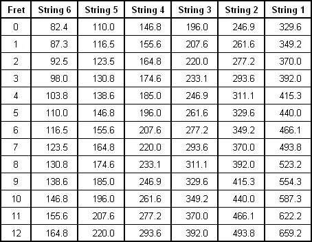 Before I go any further, let's take a look at 6 string guitar frequencies.