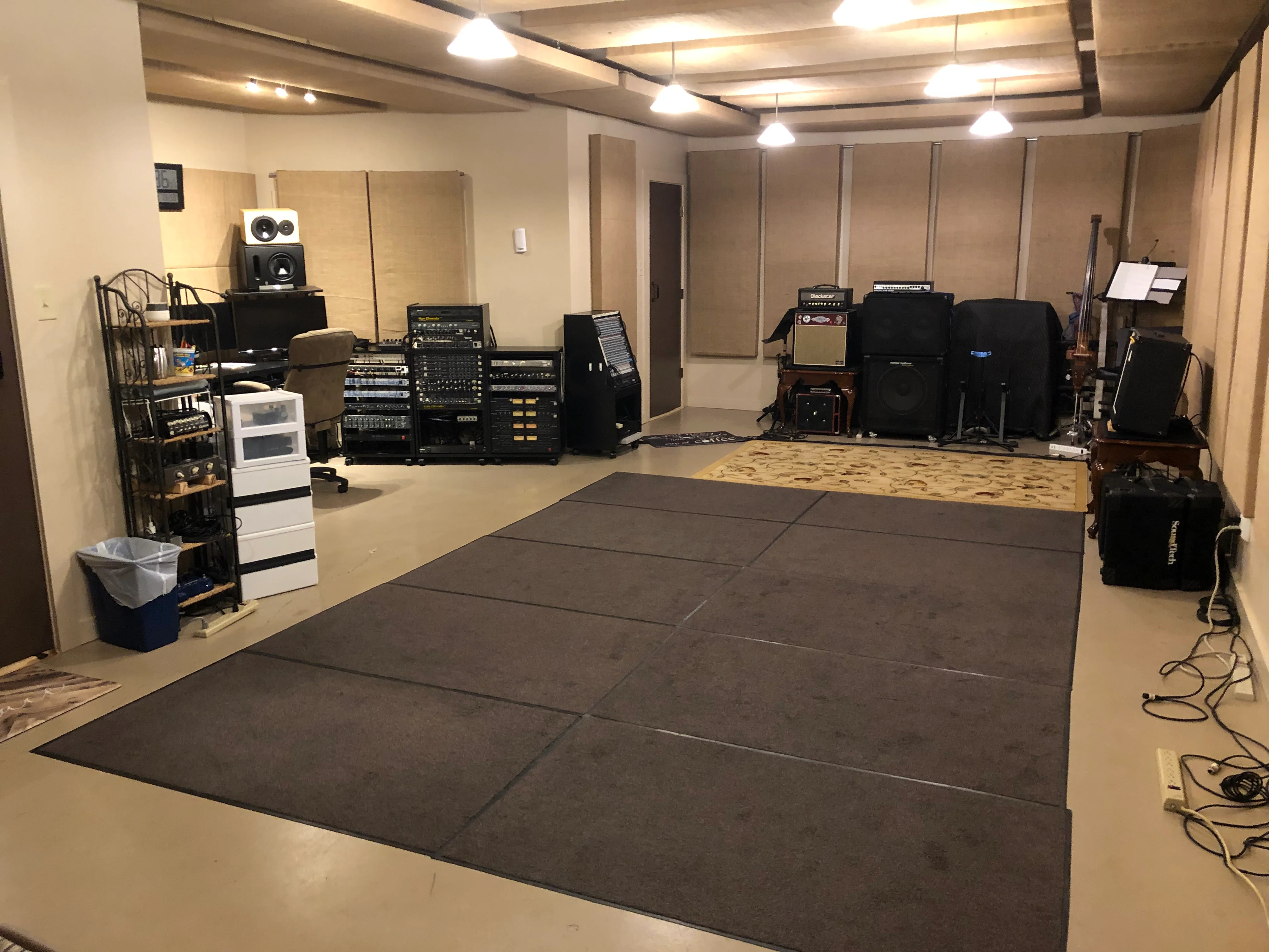 Hi, while I've dabbled at recording for years, I'm only starting to take recording seriously by actually researching and learning. However one of the first things I've learned is that I need to accousticly treat my studio space not just for recording but for mixing too. However the problem I have is that the room I use is the house storage room. I don't have a dedicated area and there is no other place, so I have to use it. The room is cluttered with an assortment of shelving, instrument racks, storage boxes, storage bags, etc. There's not a space that's not crammed with stuff or a part of wall that is not covered with instruments or picture frames, etc. I cannot declutter. I use sennheiser headphones HD560s for mixing as well as Genelec monitors. It's there any work around to accousticly treat the space. What if I hung accoustic blankets or put up a semi-circular accoustic foam floor to ceiling wall screen around the mixing area?