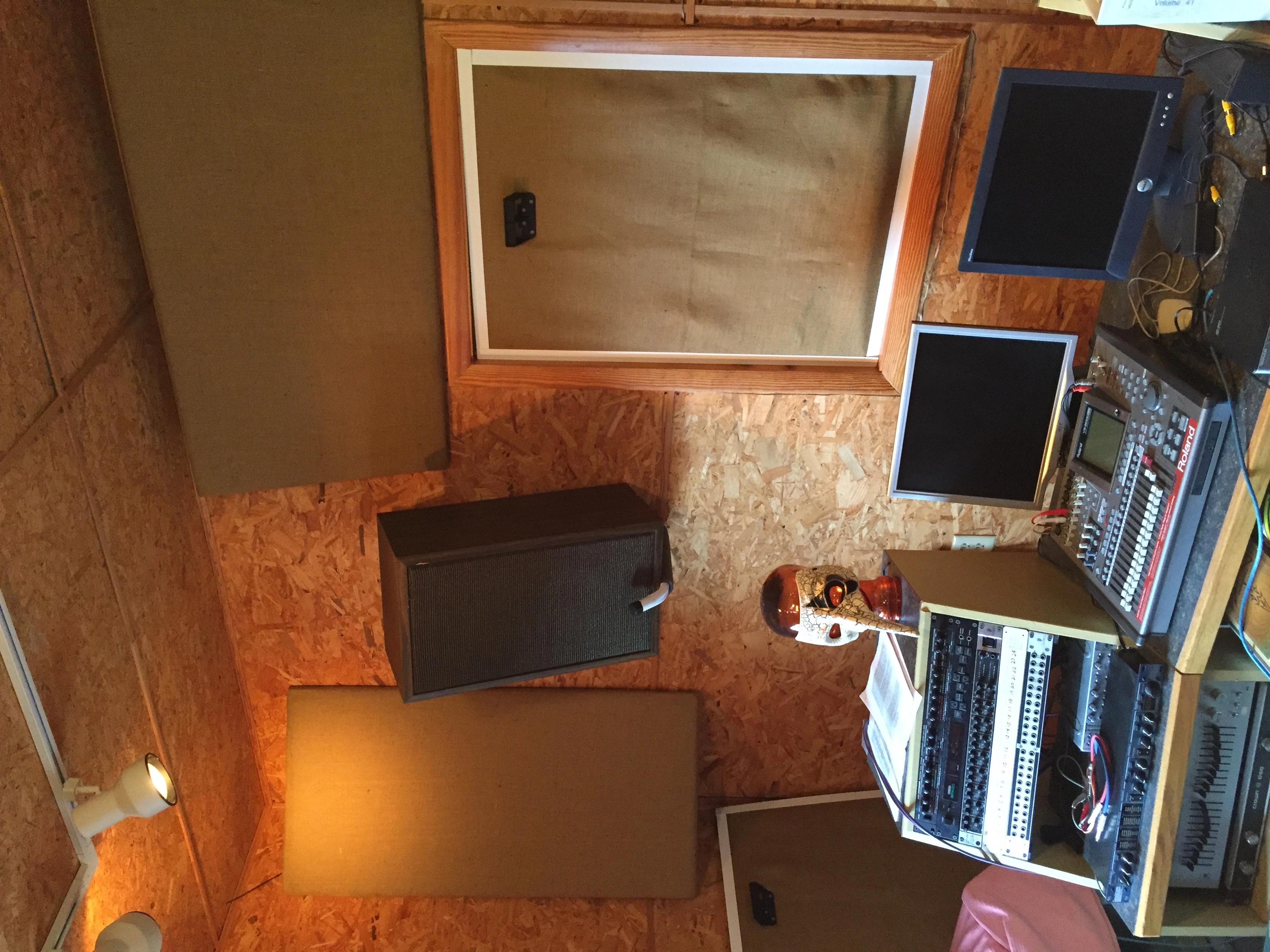 The panels are aprox 2'x3' acoustic ceiling tiles. They were wrapped in quilt batting from a sewing store. That made them about 2" thick with the burlap. My room is 10'x12 with 9' ceiling. Maybe the panels are no better than foam and just damping reflections but they definately made a difference in the room sound.