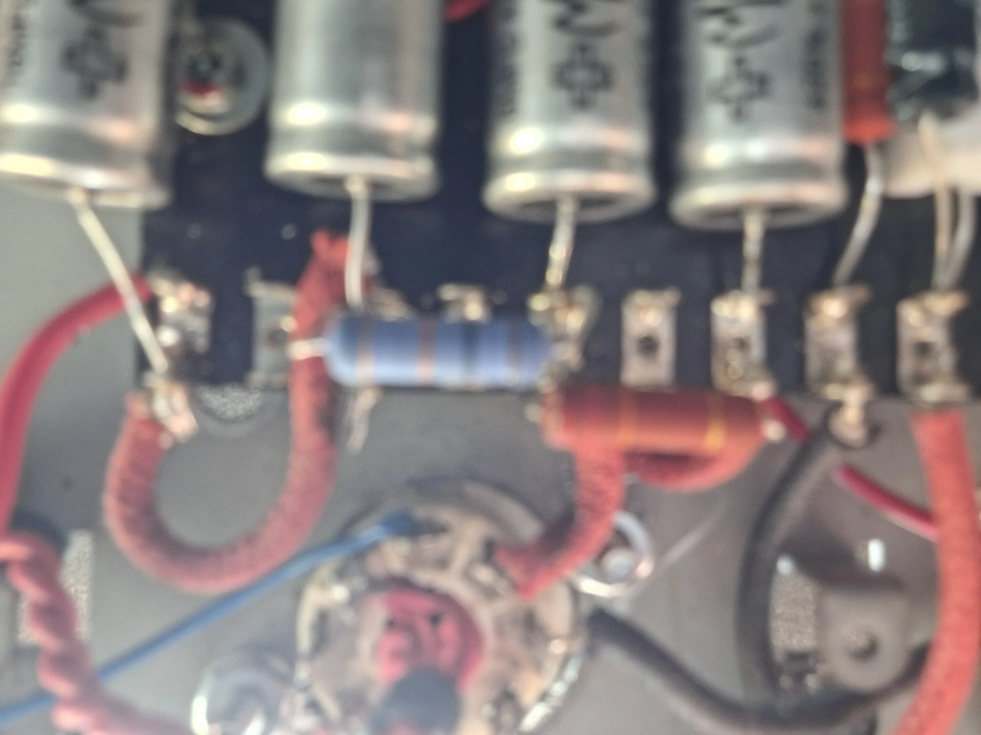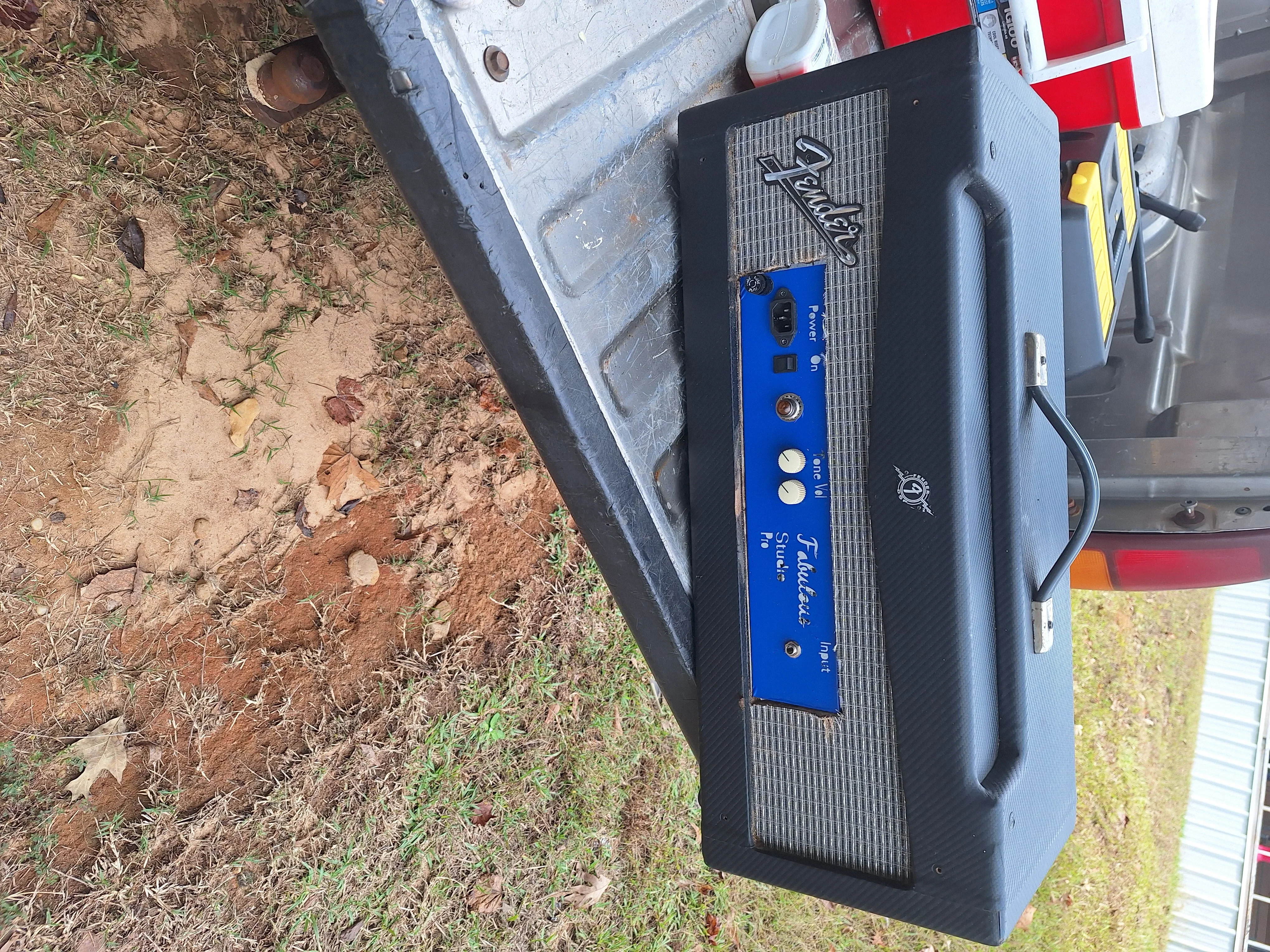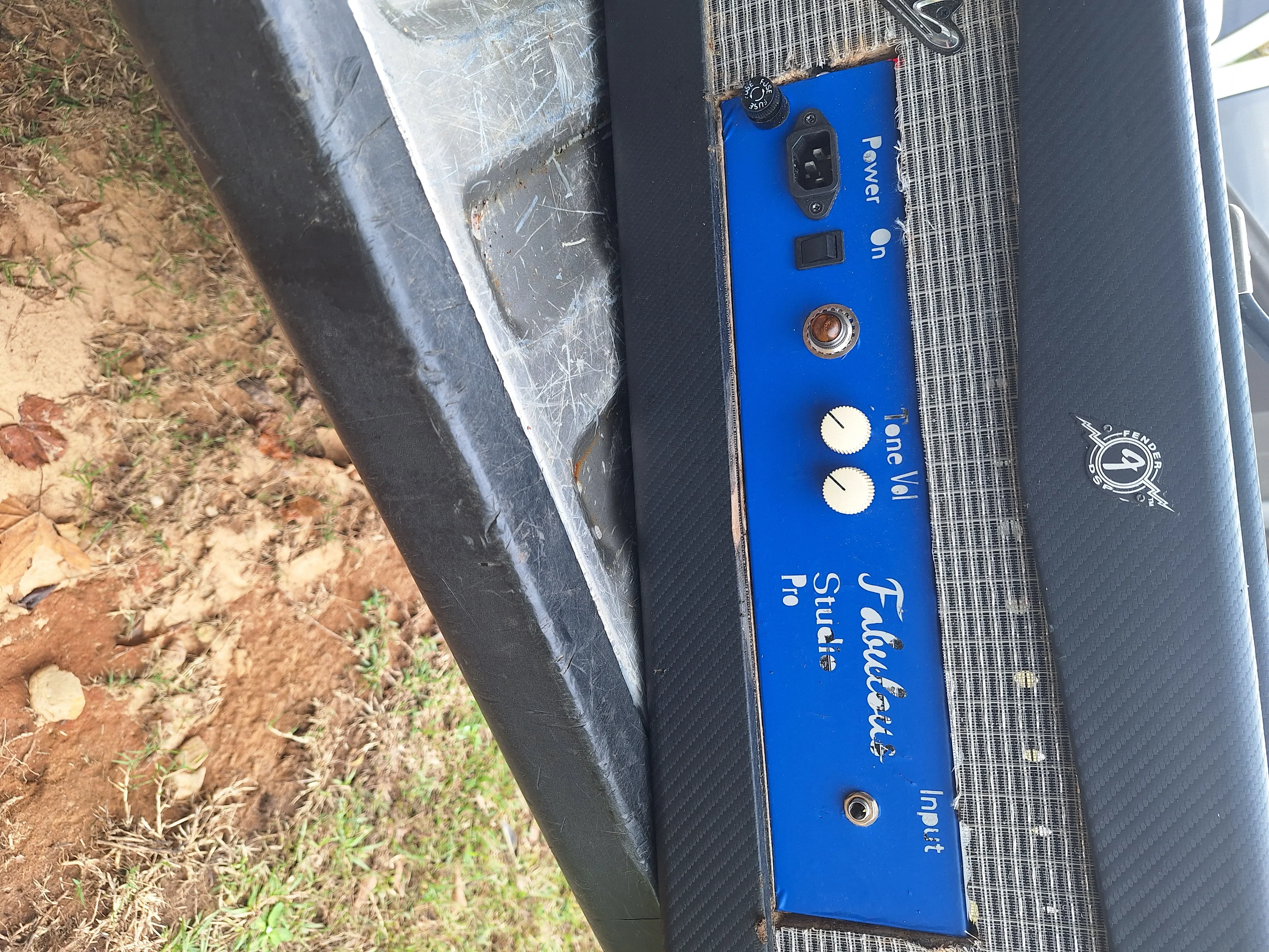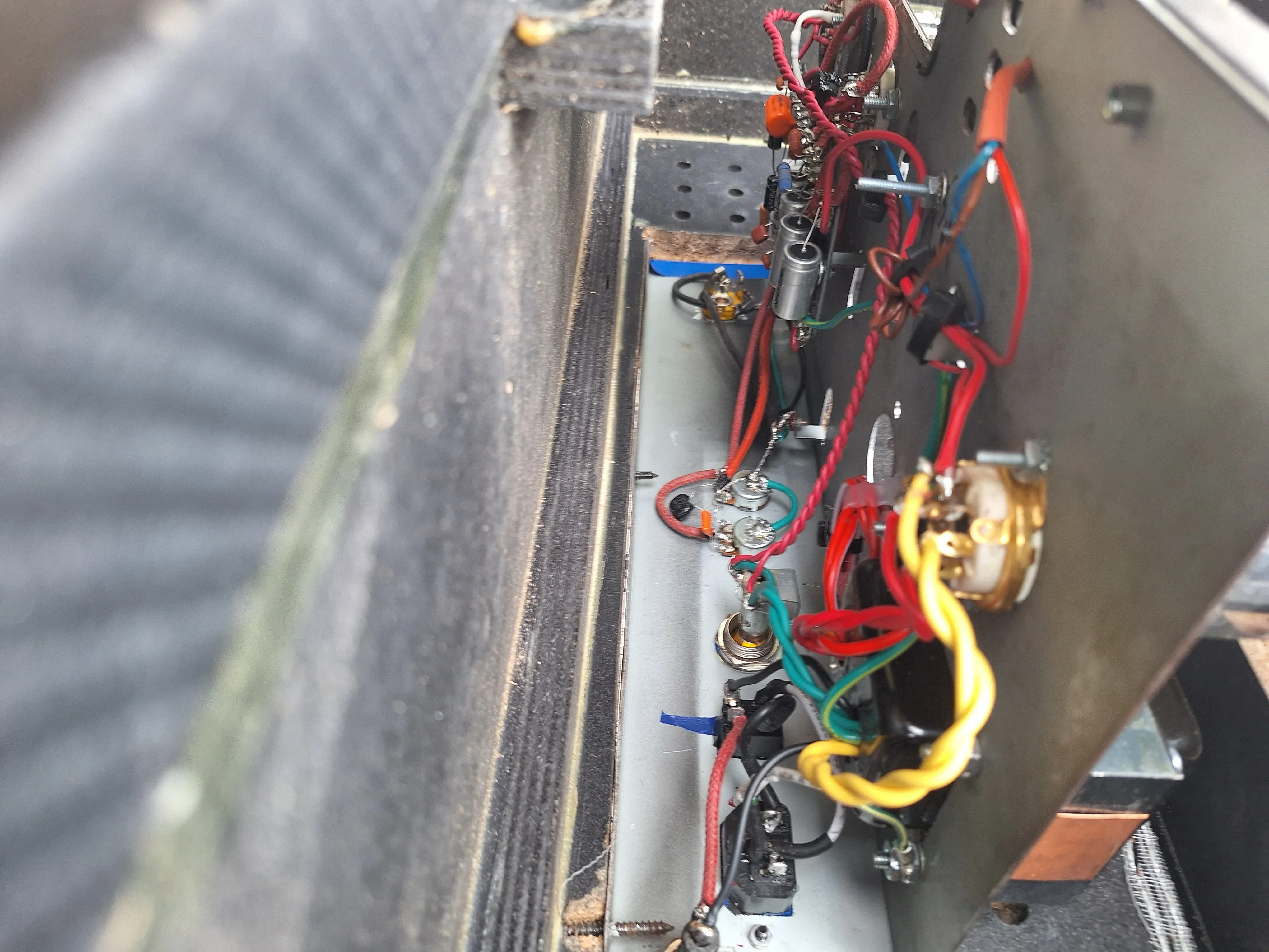 I had a fender mustang head, like fits a 4 12 slant cab. He took that head And cut the chassis. Then he loaded it with the fender tweed amp circuit. It's a 6L6 app. He put a hard to get rectifier tube in it that has some sag. It has a volume and a master tone knob...thats it.