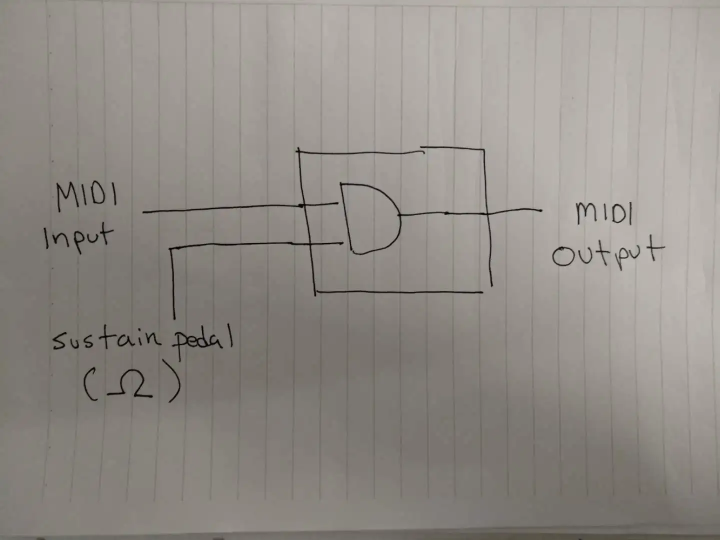 Hello, I need a black box device of some kind that can take a MIDI input signal, add sustain codes using a piano sustain pedal, and send a final code out to a MIDI responder device (a sound module to play a sample, record the final MIDI signal, etc.)