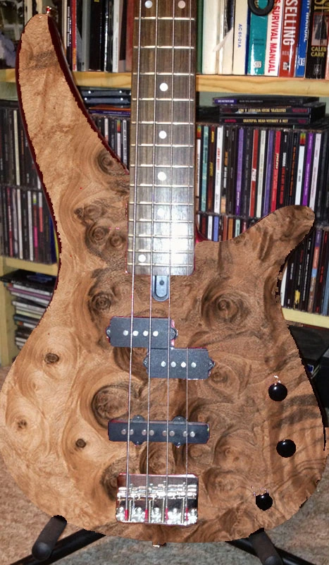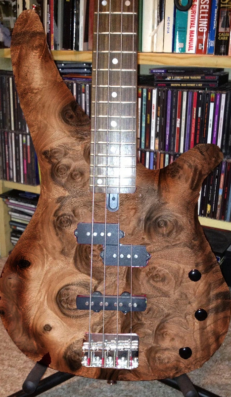 I just ordered some burled walnut veneer. I intend to strip the metallic red flake paint from my Yamaha bass and add the veneer.