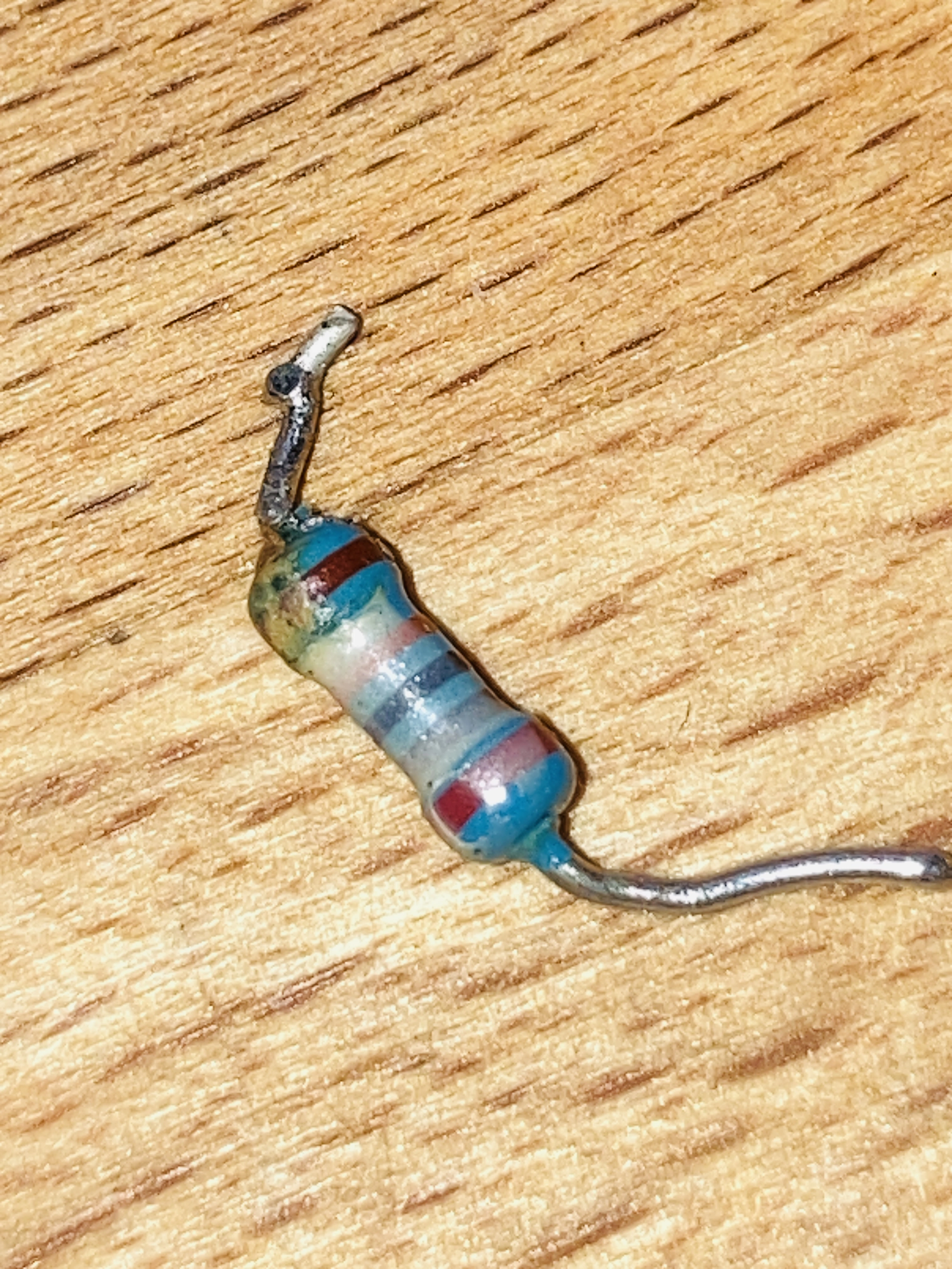 First thing I want to try is to fix is a loose resistor kind of thingy that was noodling around in the chassy (see picture below). However, the problem here is, so far I couldn‘t find it’s original location on one of the various pcb‘s. I have the service-manual and the schematics, but since I couldn’t figure out the resistor’s exact name/number/description, it’s rather impossible to find it. If anyone knows about this little thing, it’s name or about where it could possibly be located, I would be very happy. Thanks for any tips and hints