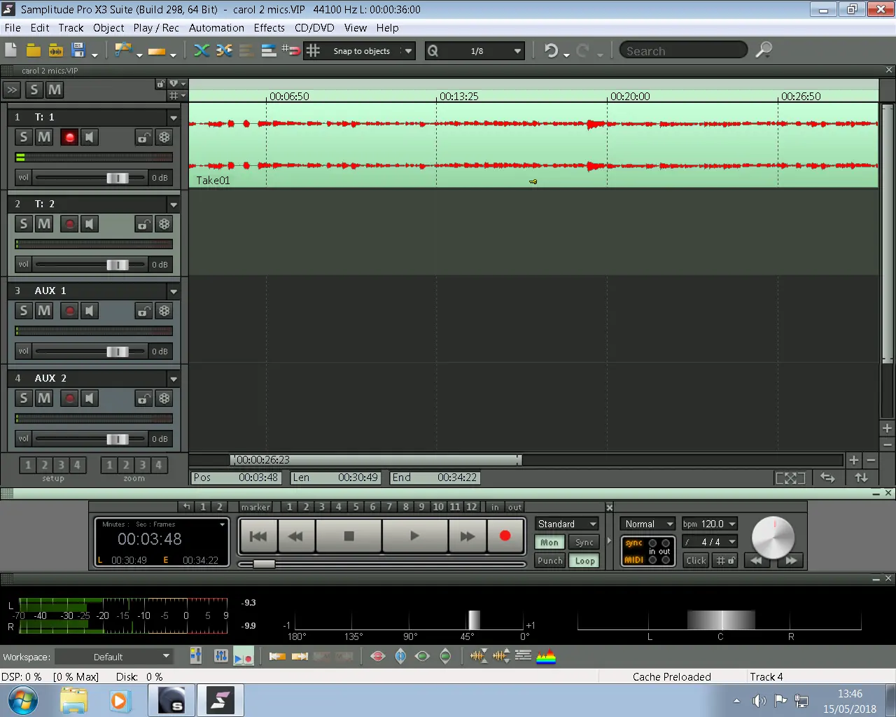 Mics feed a KA6 the cap' channel is at zero gain and the dymo at 2 0'clock. The clip is being played out of a 2496 card to the amp.