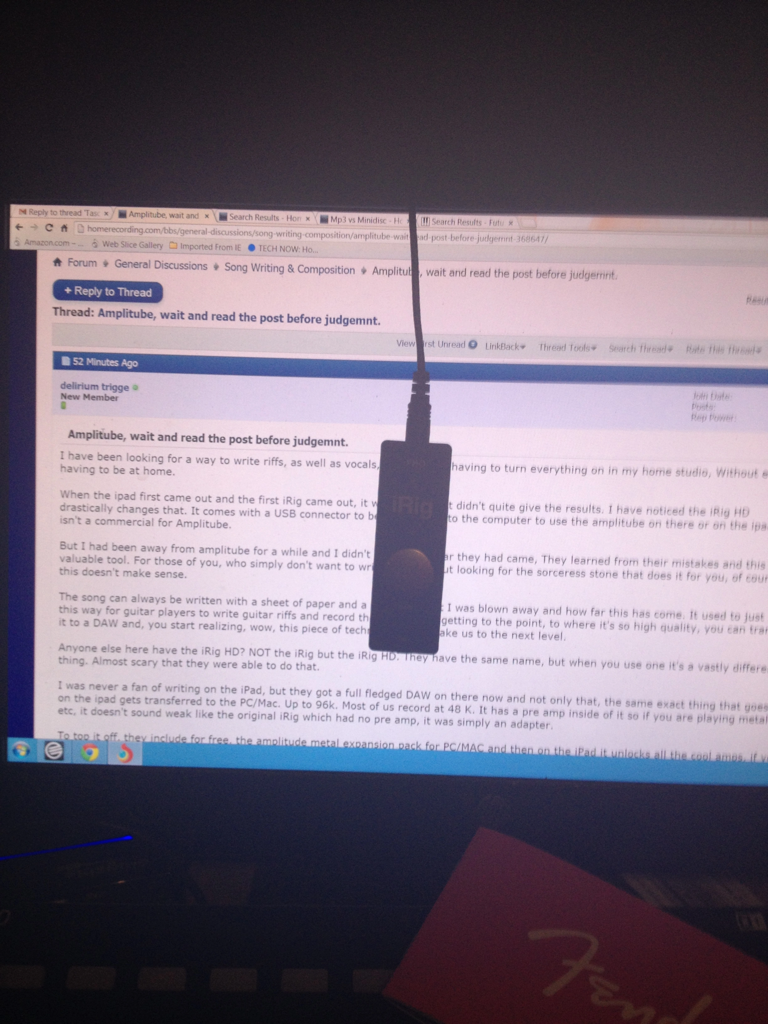 When the ipad first came out and the first iRig came out, it was neat, but it didn't quite give the results. I have noticed the iRig HD drastically changes that. It comes with a USB connector to be an import into the computer to use the amplitube on there or on the ipad. This isn't a commercial for Amplitube.