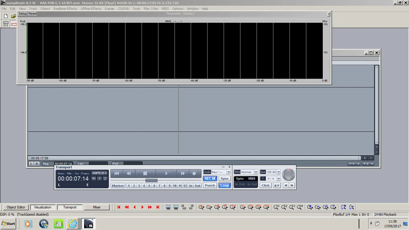 OK, first of all, your input signal is way to low. This will cause noise as well. If you look at the pic below, it is almost a -50dbs input level. This should be around a -12db to -18dbs.