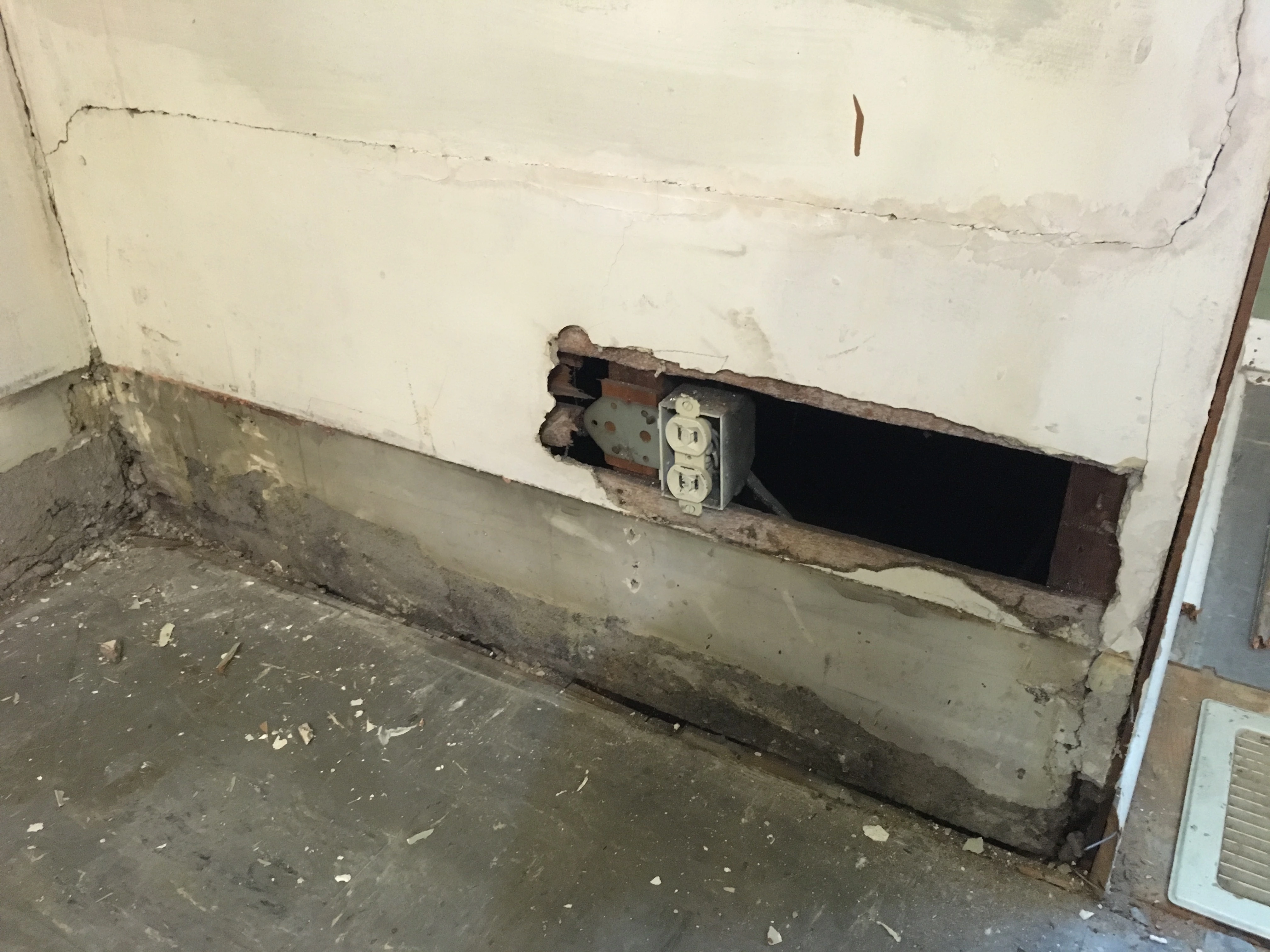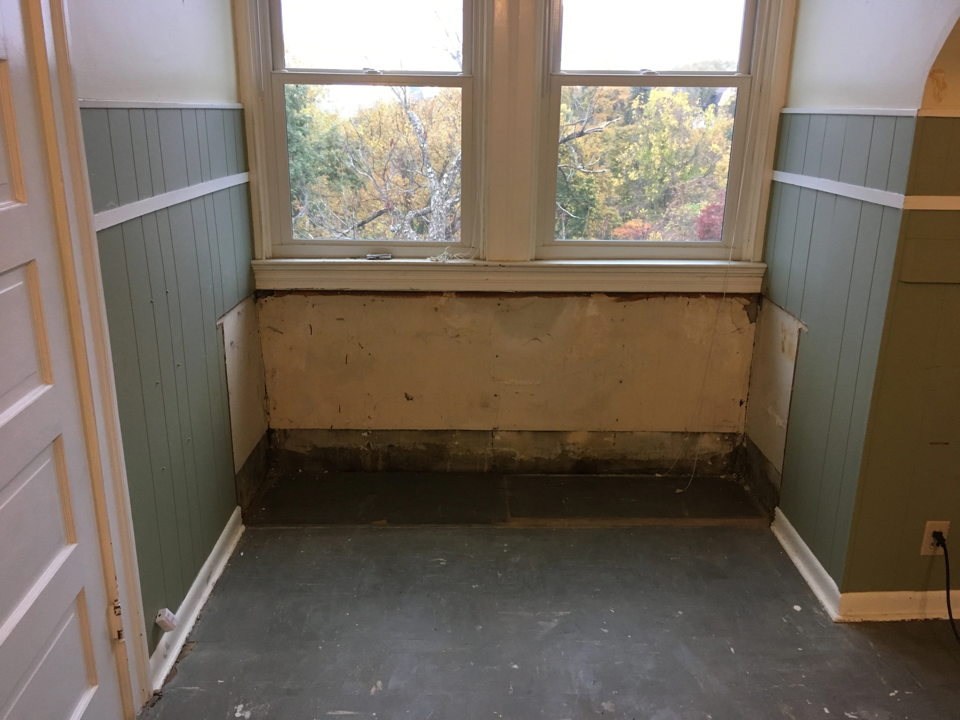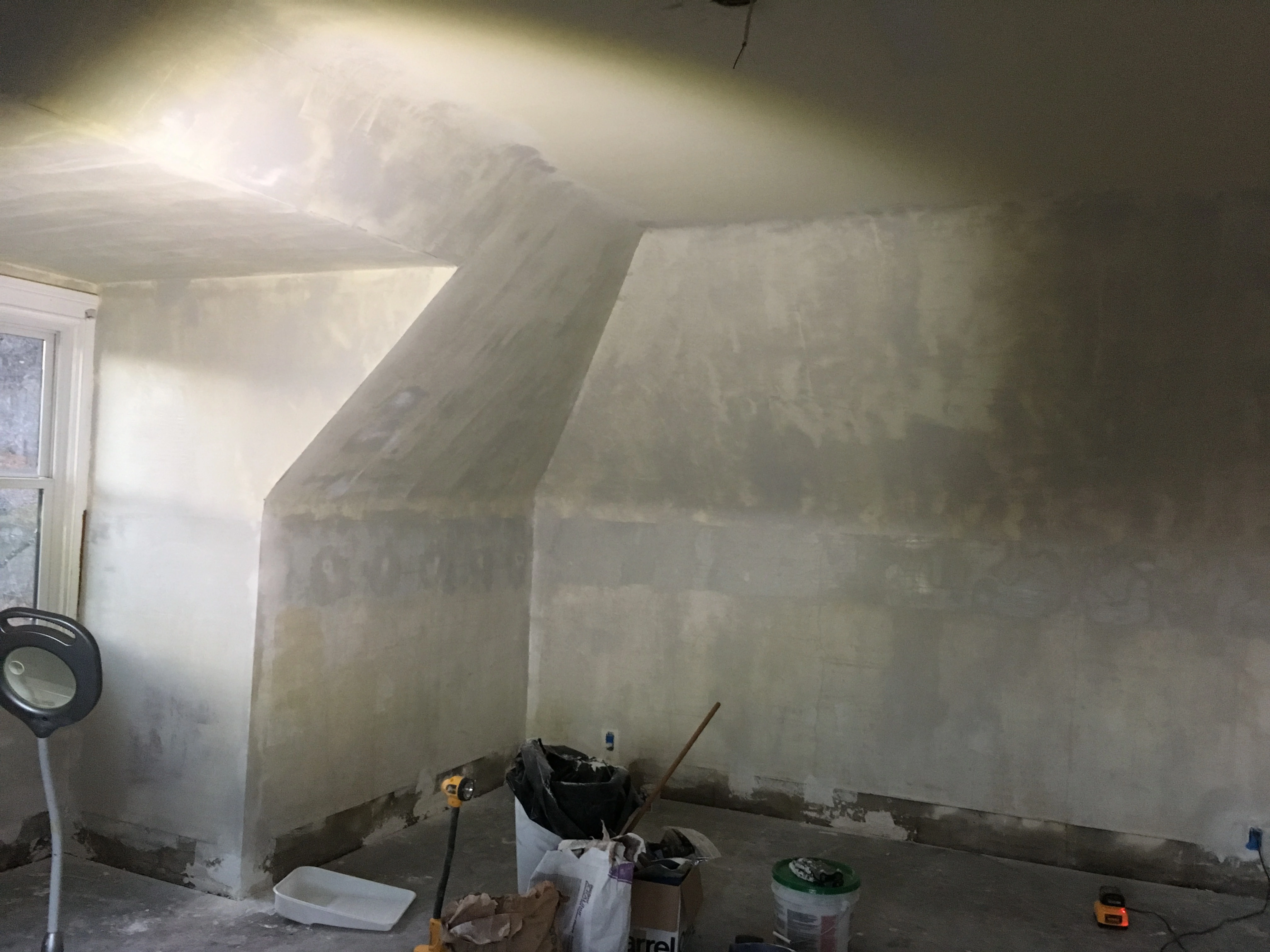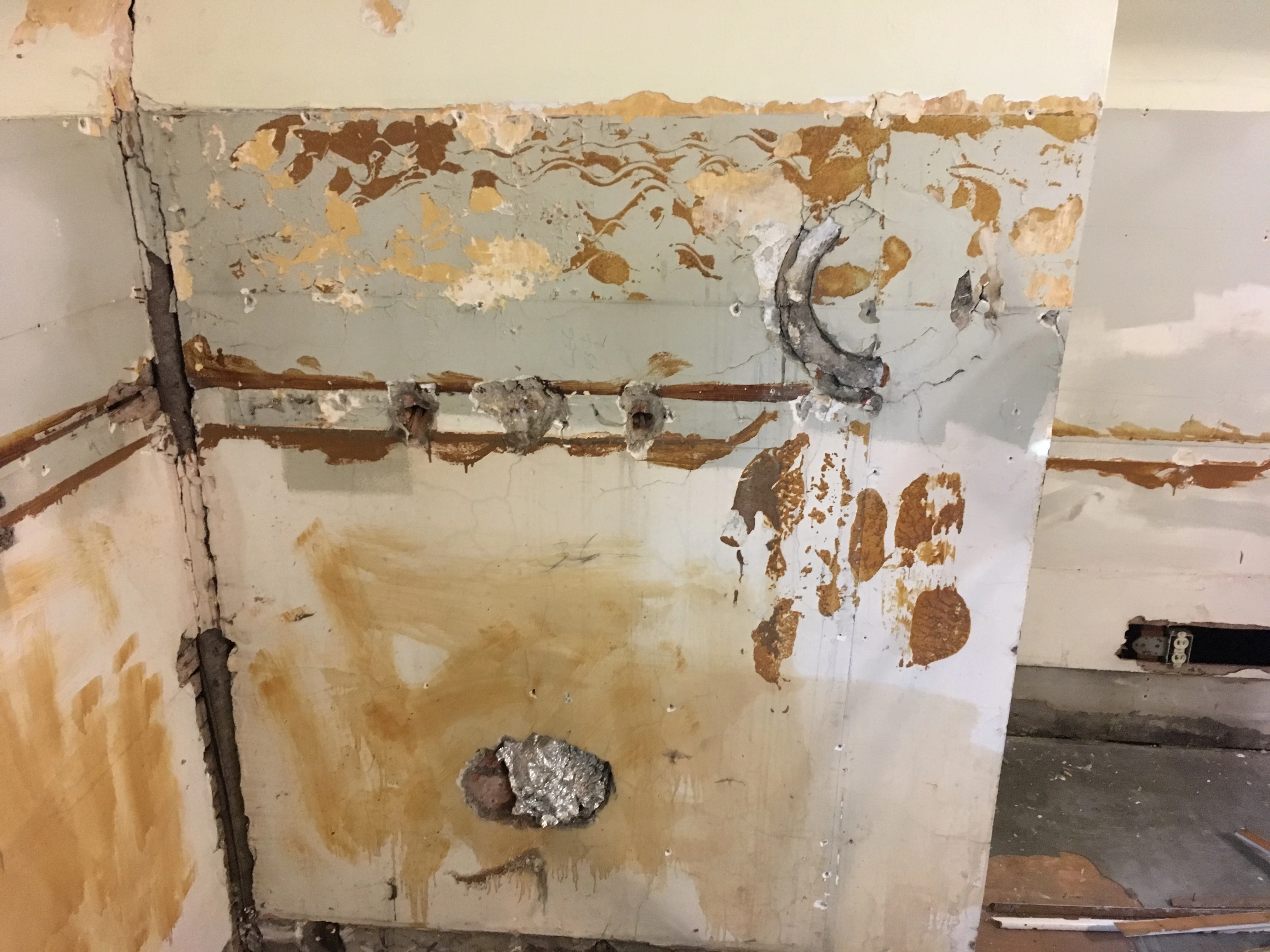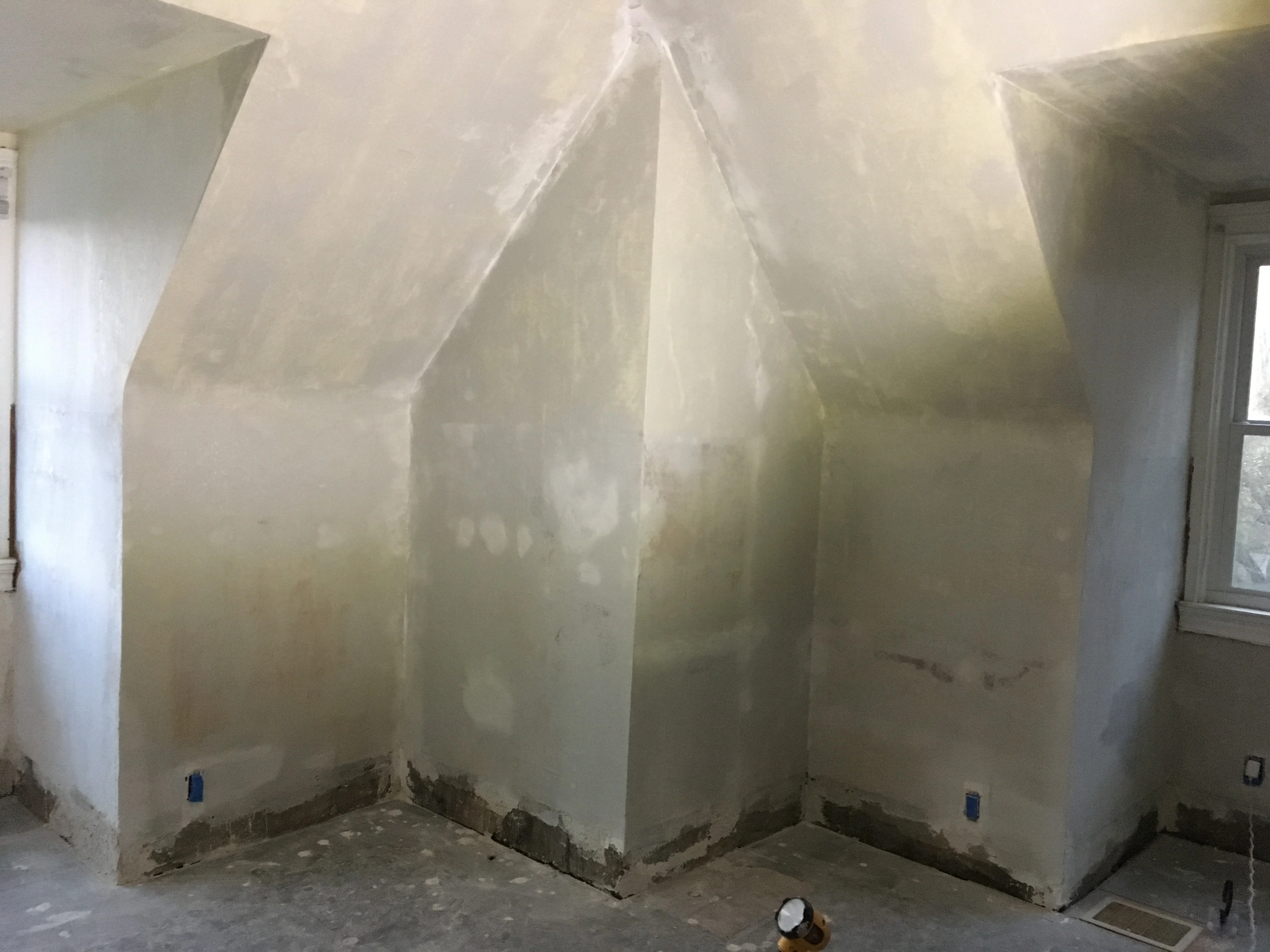 The first thing we're going to do is some wall repair and painting, and then rip up the carpet and do something with the plywood sub-floor. There's hardwood beneath it, but, unfortunately, there's also a nice layer of lead paint that we're not excited about messing with.