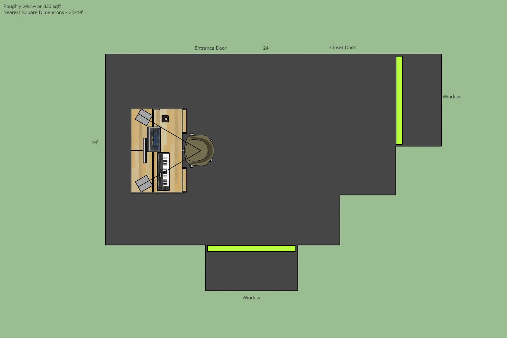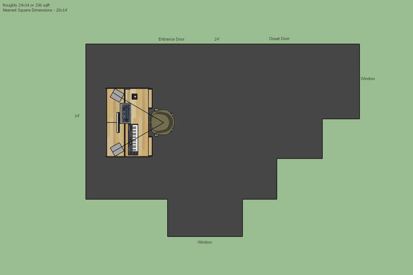 We have a bunch of rockwool panels and will be building more for corners and first reflection points.This is our working floorplan: