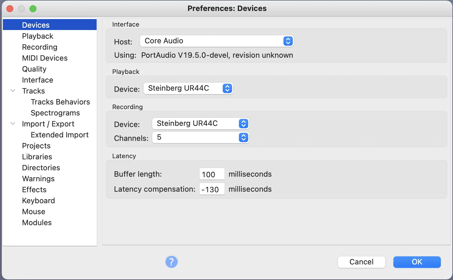 Just got a laptop and interface, and about two weeks ago I downloaded Audacity. The rig: Shure 58 mic / Focusrite Clarett 8pre USB / MacBook Pro OS 12.2.1 / Audacity 3.0.4.