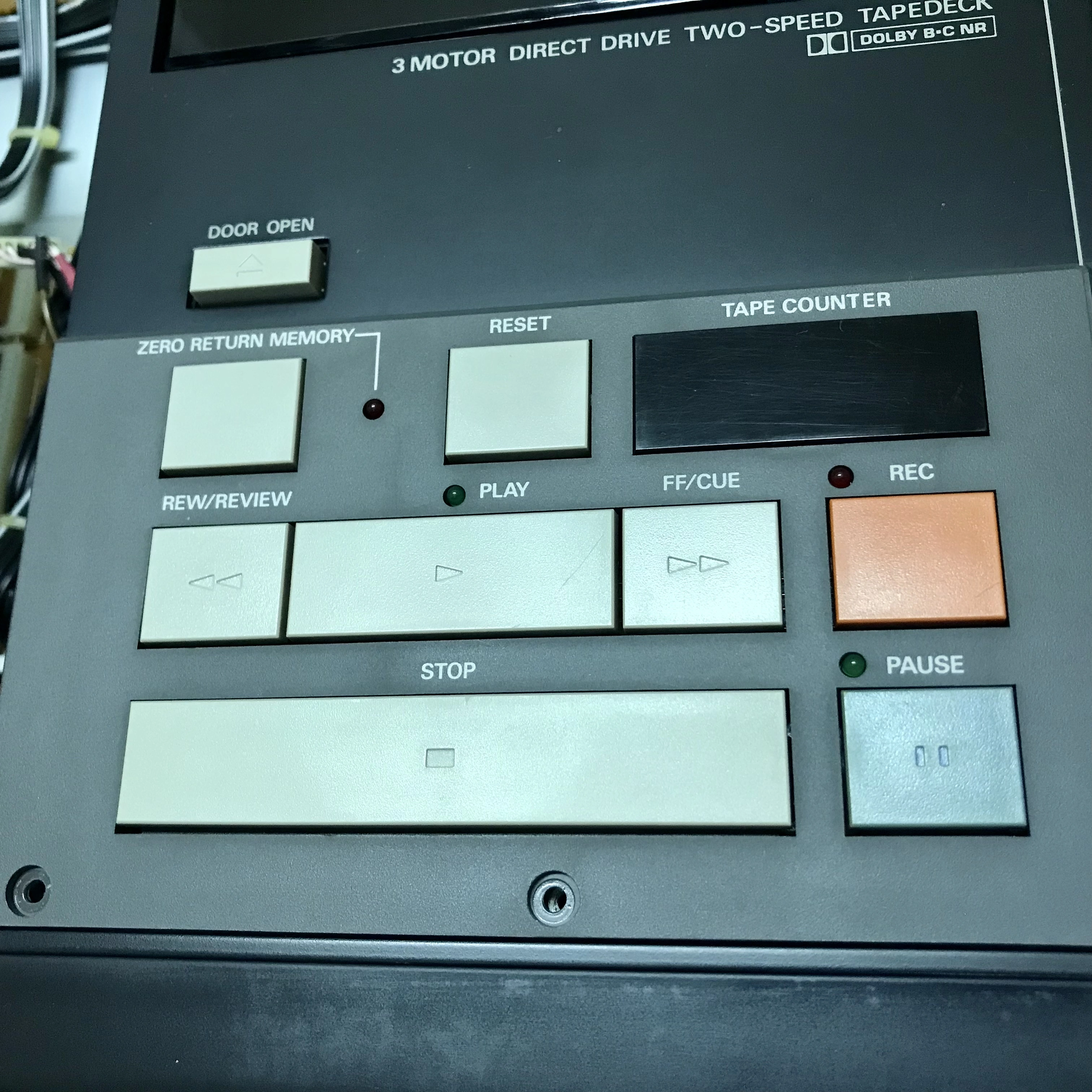 Oh and on a different subject, you can tell a lot about how much a machine has been used by the wear on the transport buttons…fingers kind of polish the plastic over time. Here’s some more evidence this machine is relatively low miles: