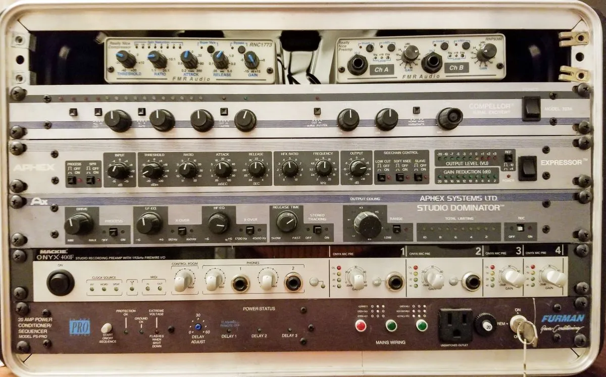 I basically know nothing about recording equipement at this point but am eager to learn. My wife plays guitar, sings and is learning audio book recording. She has Acoustica Mixcraft 8 and has been learning to use it so she knows the basics of that software. Her father passed away and left behind a lot of sound equipement. I want my wife to focus on what she is doing now so I thought I would help her by learning to improve her recordings. Among her Dads recording equipement was the following portable rack gear: