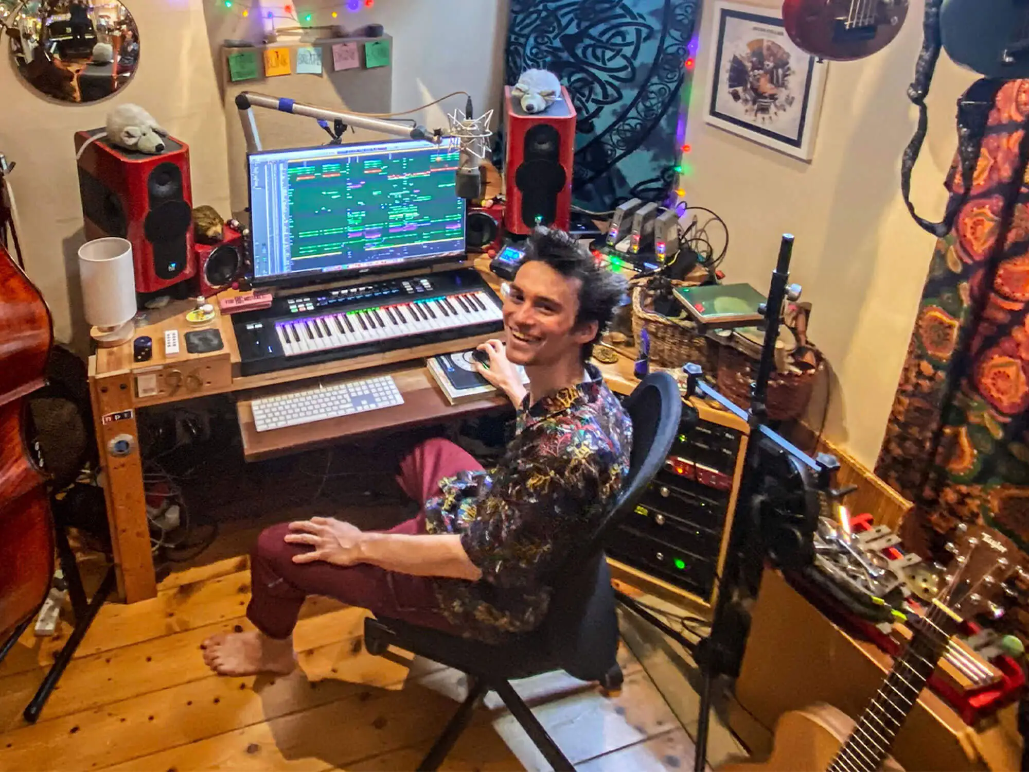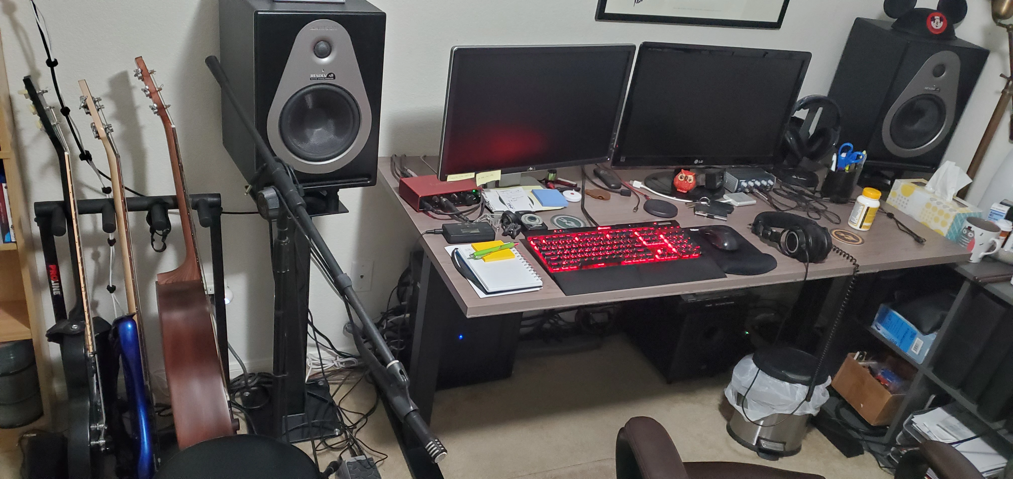 I have a studio in my bedroom that I use aside from working in my main studio building. I am searching for a desk or solid-wood table that could give me enough space for my general gear that I use at home, including my M1 Mac mini, computer monitor, Yamaha HS7 monitors (on IsoAcoustics ISO-155 stands), Focusrite Scarlett 2i2 interface, and hopefully my Komplete Kontrol S61 Mk2. I've seen guys like Jacob Collier using what seems to be a home-made looking wooden table/desk for their studio. I recently tried ordering a pretty basic wooden dining table from Wayfair, but it came cracked, so I figured I'd reach out here and see if anyone knows any good solid-wood tables and/or desks that are from reputable brands and come in a length somewhere in the range of 50" to 60". I've also attached a picture of Jacob Collier's desk as an example of the simplicity/sturdiness I'm looking for.