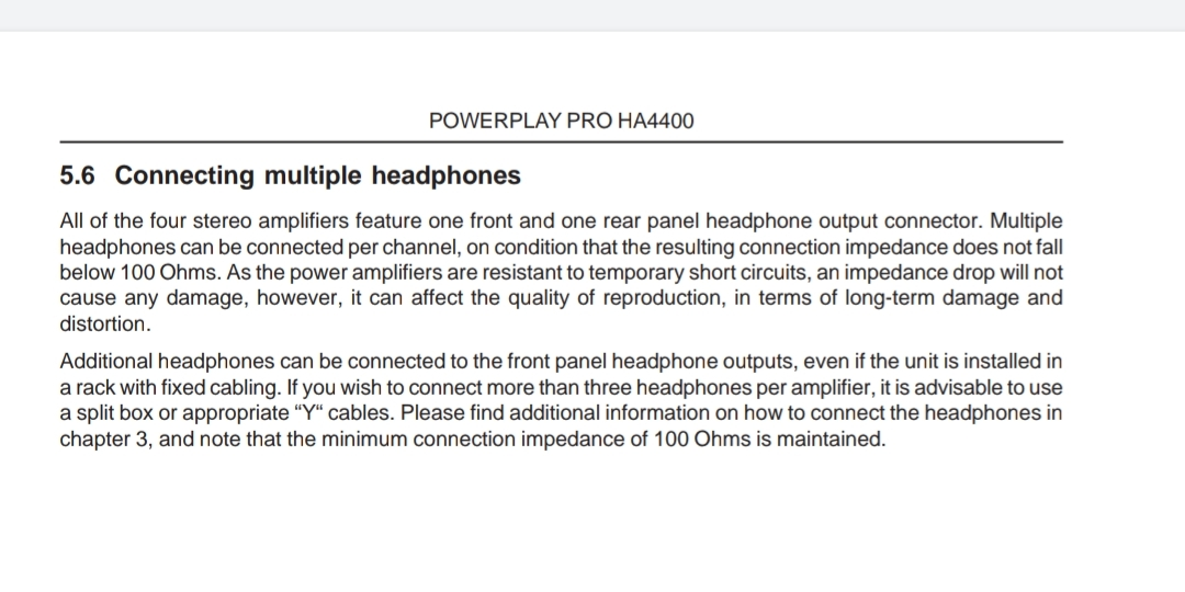 I recently obtained a Behringer Powerplay HA4400 headphone distribution unit.