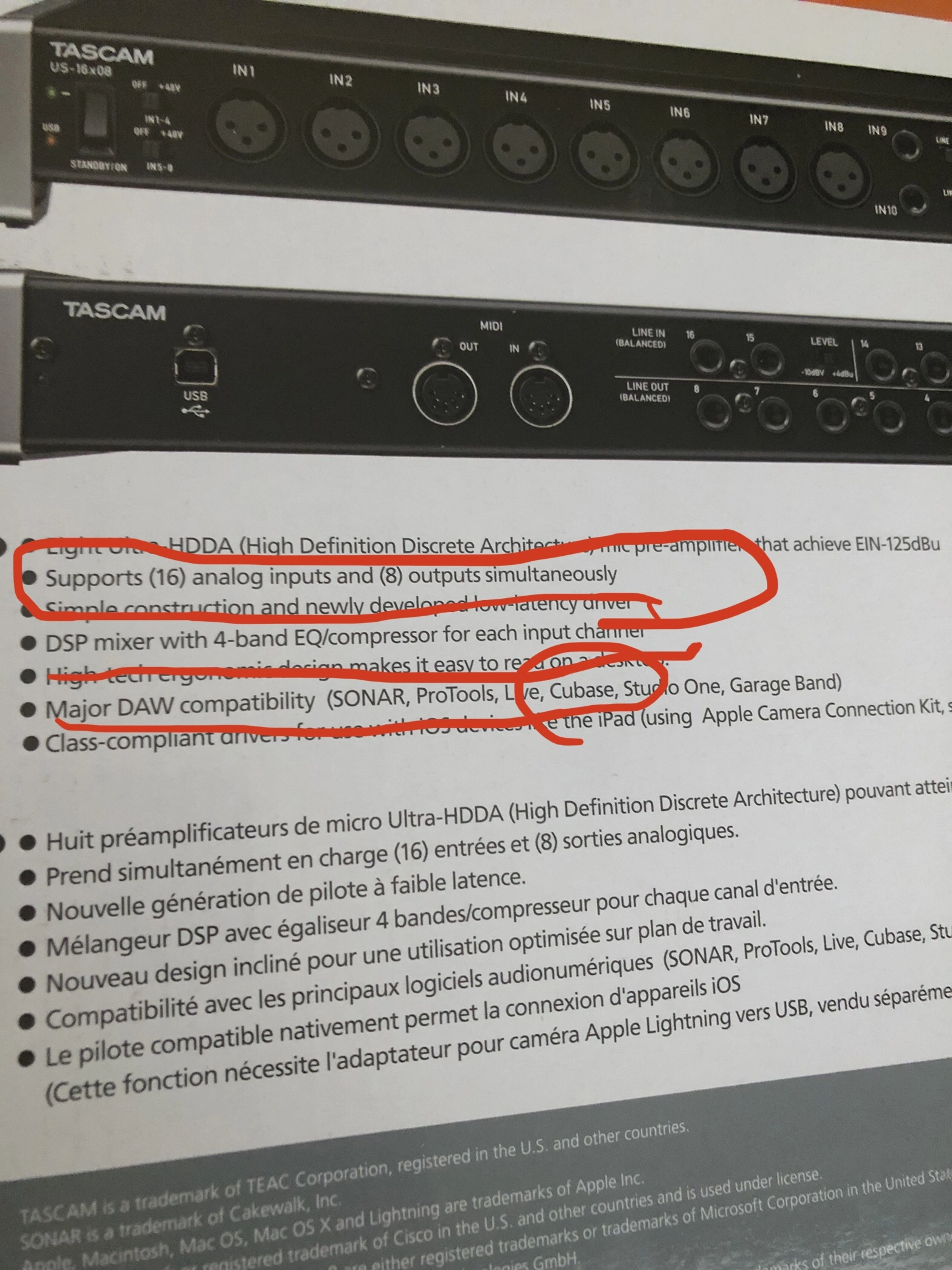 The 16x08 does have 16 inputs, but only 8 mic preamps. If the OP needs to record more than 8 mics, you can do that easily with 2 US-16x08 boxes. You connect one via USB to your DAW and leave the other with no USB connection. It will then default to an 8-mic preamp, with inputs 1-8 connected directly to line outs 1-8. Those line outs can then be patched to the USB-connected interface's line inputs (9-16). Easy peasy.
