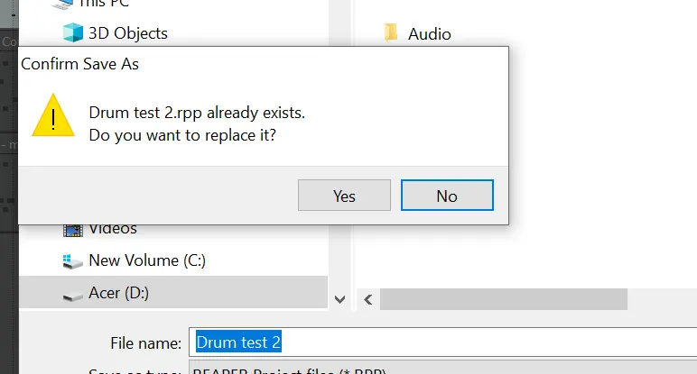 When I RE-save a file ( i.e. one I have modified), I am shown that I already have a file of that name. When I save the file, it does not overwrite the existing file, it adds another file. See image attached.: I now have three "Drum Test 2" files. I want the latest file to overwrite the existing one and keep only one updated file. I know I must be doing something simple and wrong. Help, please, Brian
