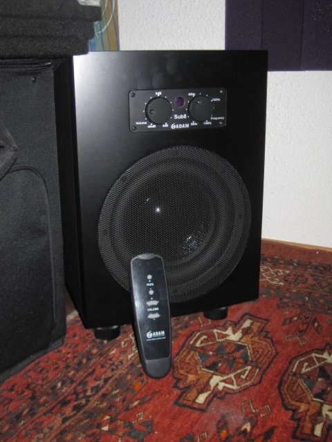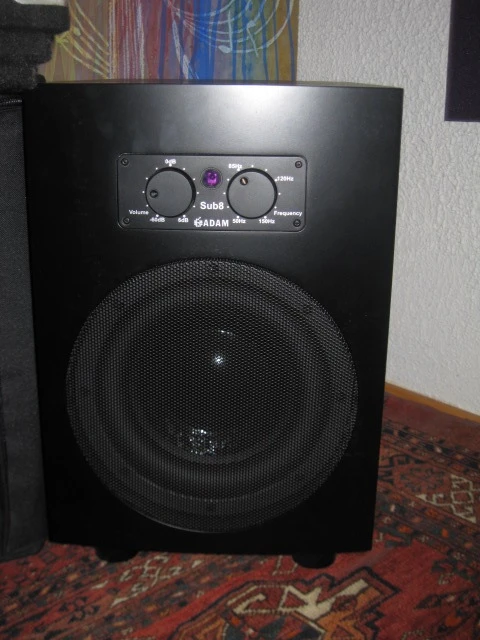 Adam Sub-8 subwoofer. B-stock item unpacked for less than a week. All original box contents included. Works perfectly and even includes the still fresh included batteries for the remote. It was B-stock, so there are a few minor bumps on a few of the edges. Otherwise this is perfect. Will be wrapped in the original plastic packaging, etc. Here's a review on this superb studio sub: