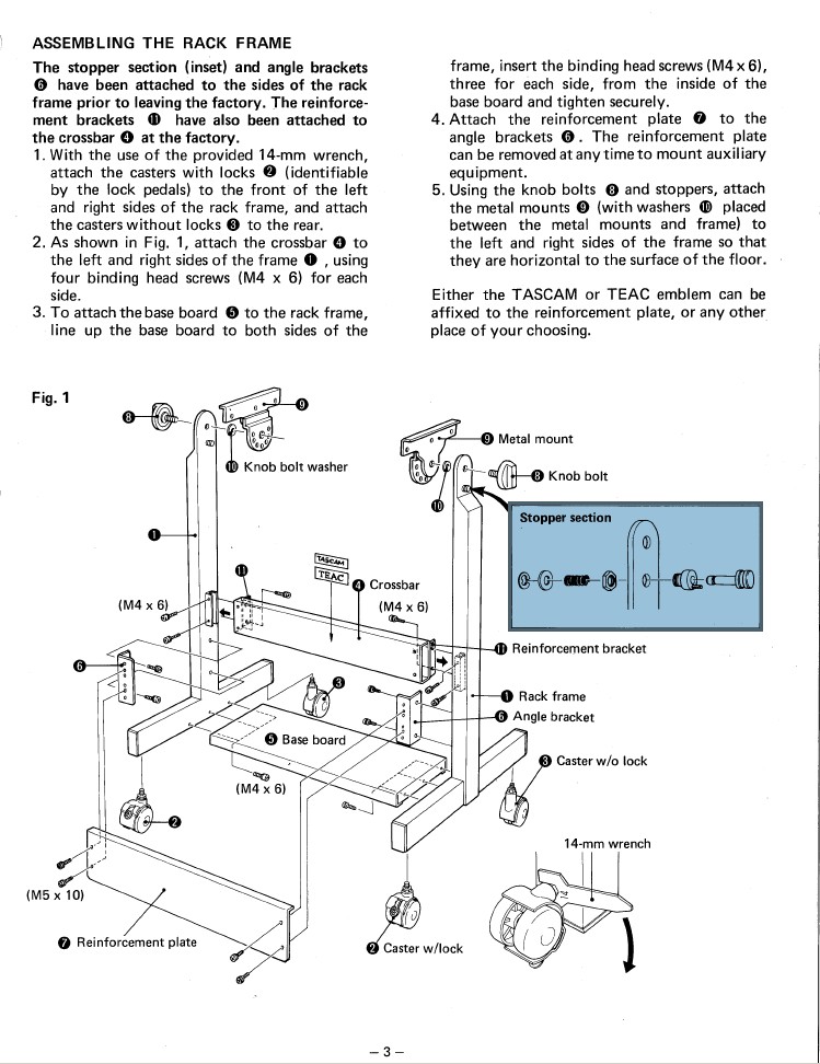 , and I had access to a set of 4 non-locking casters that look nearly identical to the Tascam parts, so I put those on the RC-51 Trolley as it is relatively light compared to a deck in the CS-607...not really worried about it going anywhere. I put the ones from the Trolley on the CS-607 rack.