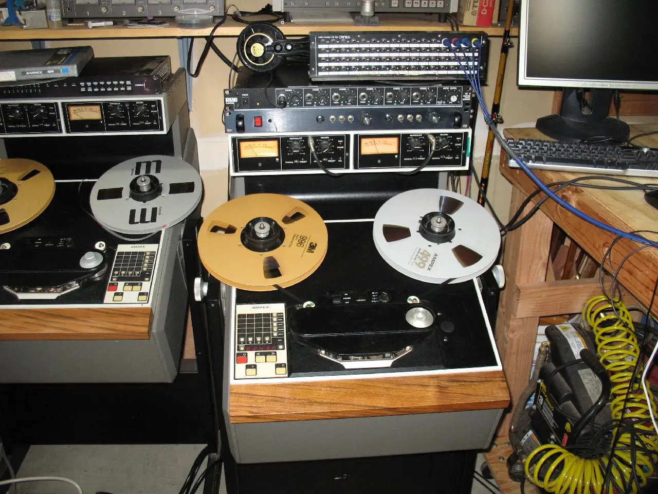 Modded Oktave MK319 in blumlein into a DIY Great River MP-2 (not NV) and from there to an Ampex ATR-102 1/2" half track running at 30 ips on 499.