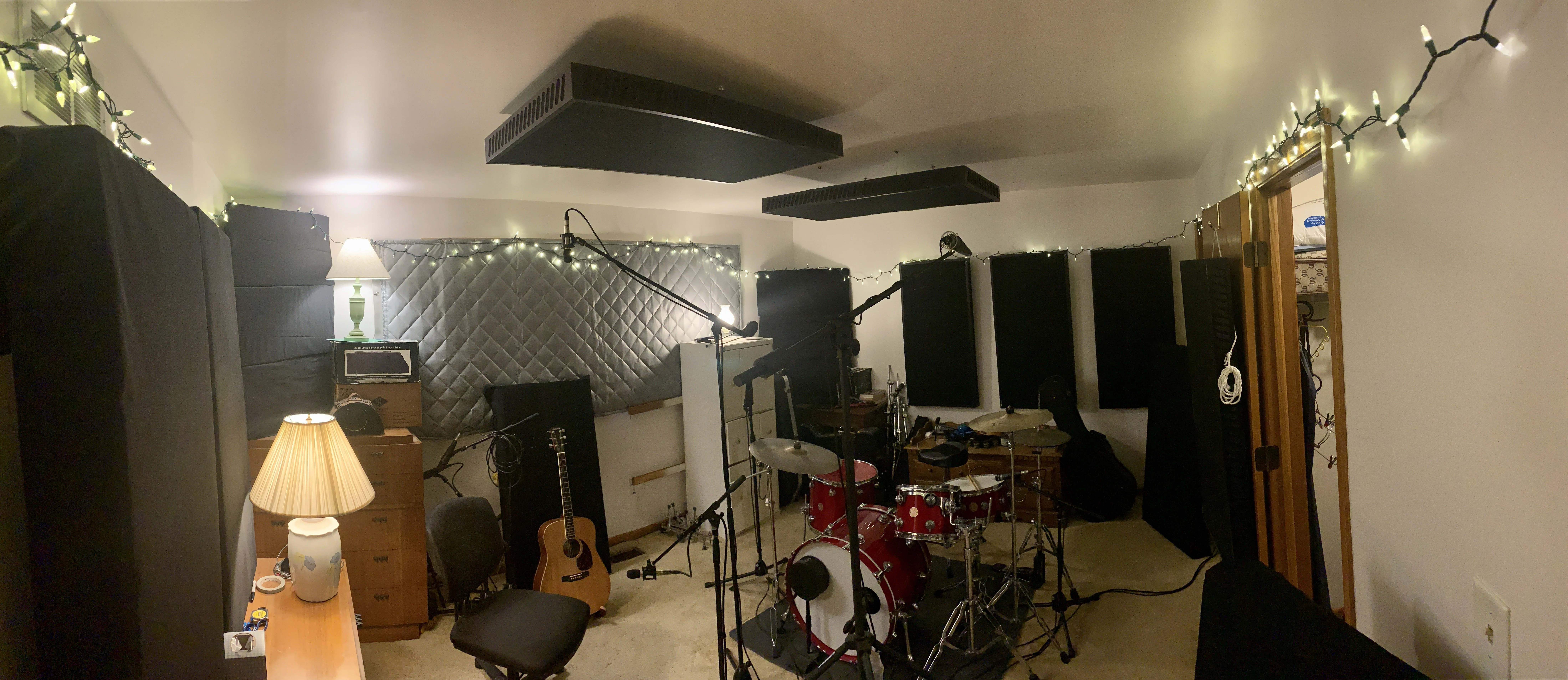 I was shocked that the triangle traps made that much of a difference! I totally thought I was going to eat the money I spent on making them, but the A/B test resolved me to making more. I want to see what they can do in the closet with the guitar/bass cabinets. Since I put all those traps in there I record as much as I can in that room now, even though it's easier to sit at the computer in the other bedroom (which does have panels in it, just not like the drum/recording room). Everything sounds SO good. You can use more distance on the microphones and not have things sound smeared or muddy. The punchiness of the drums an how much better they come through in mixes is just huge to me. It's like hearing an out of focus vs. in focus camera if that makes sense.