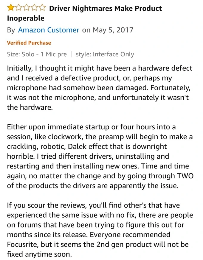 "The reviews I read on Scarlett Pres being notorious for driver distortion rings true with me.