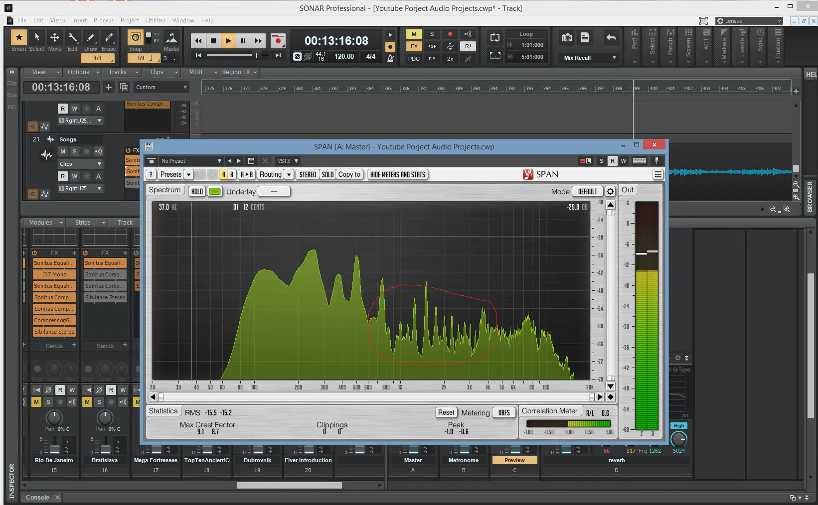 Most of my master buss sound waves look something like this --- in the mids at least. - spikey type formations from 600- 4-5k. while that may indicate a lack of mid sounds the pattern of "spikey" wave form doesn't make sense to me!