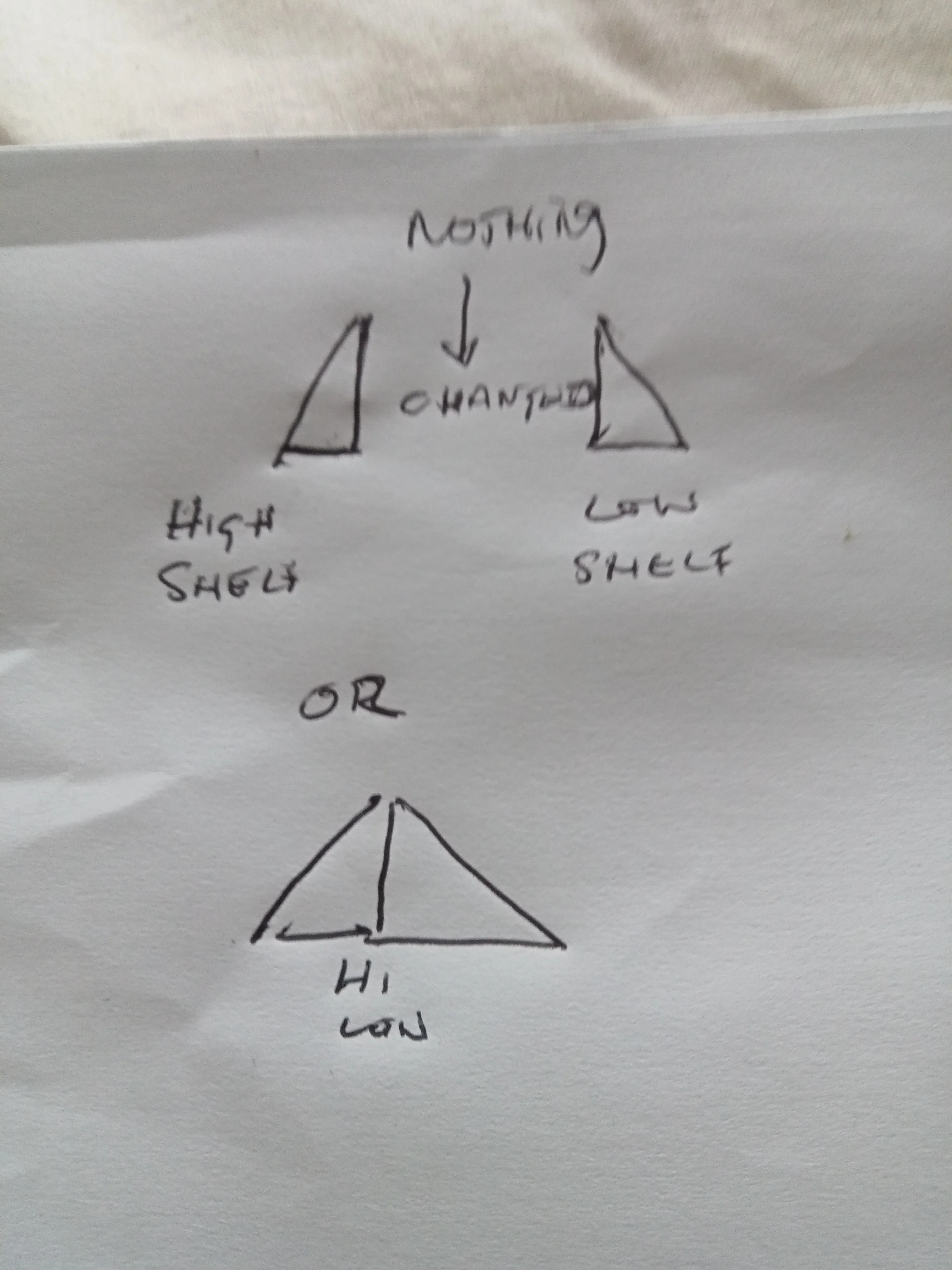 My understanding of a shelf filter is that it does pretty much the same as a LPF or HPF above or below a frequency, all content is removed - I tend to use these types on things like drum overheads or in my case, my own voice where I am also playing bass, and the vocal mic picks up the bass amp behind me. The difference between brands is often how steep the slope of the cut is. I'd prefer a very steep one - so it savagely wipes out the bass, or the annoying stuff up top where they spoil the sound I want. Some like on the behringer X32 seem quite good at this, but never quite as good in Cubase, I note. So no boost or cut above the selected frequency, then as much as possible below (or the reverse)