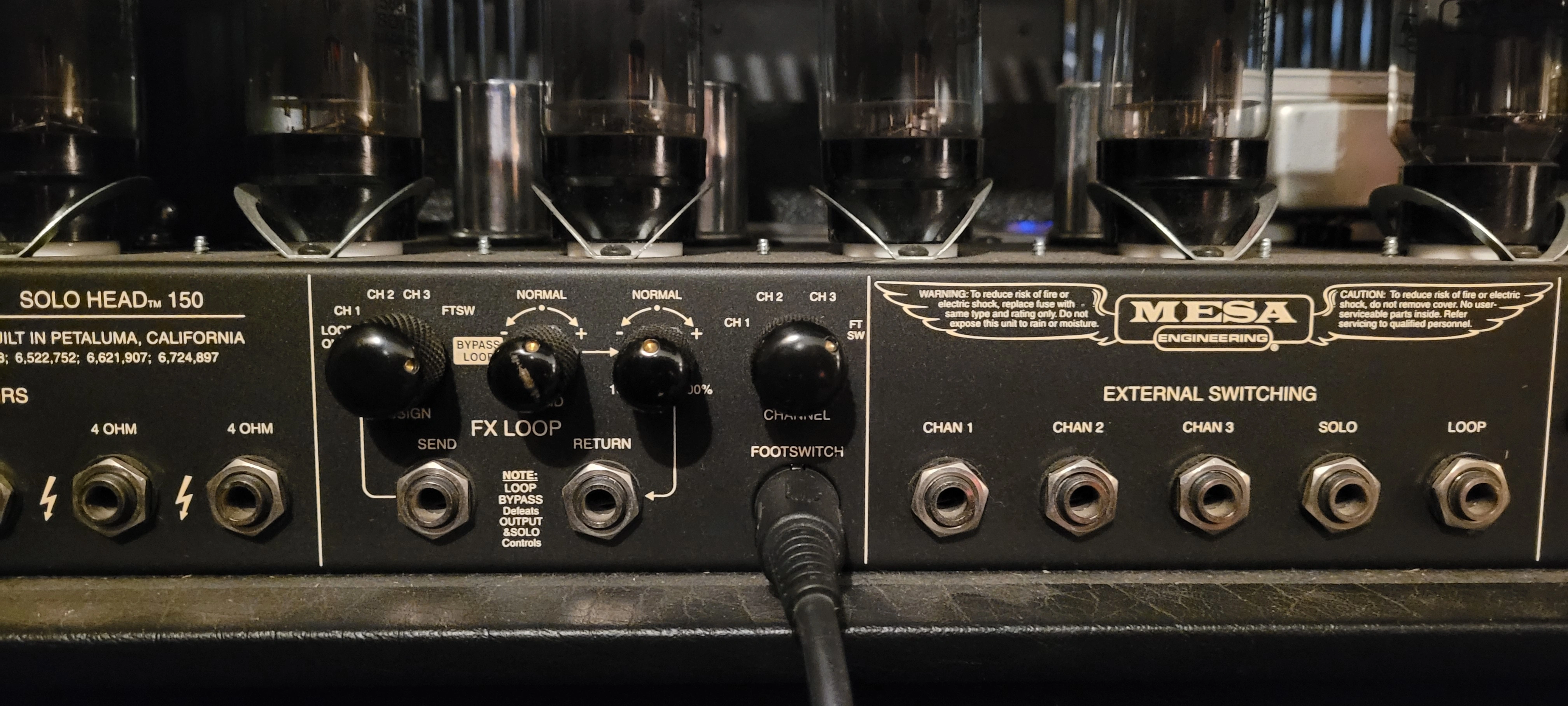 Mesa Boogie Midi matrix will control the amp switching through midi. (without having to mess with those external switching jacks)