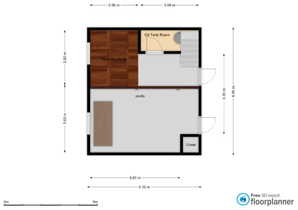 I'm planning to build the booth where there's the wood floor... There's 2 wall already build that I would but another layer of drywall with greenglue between them.