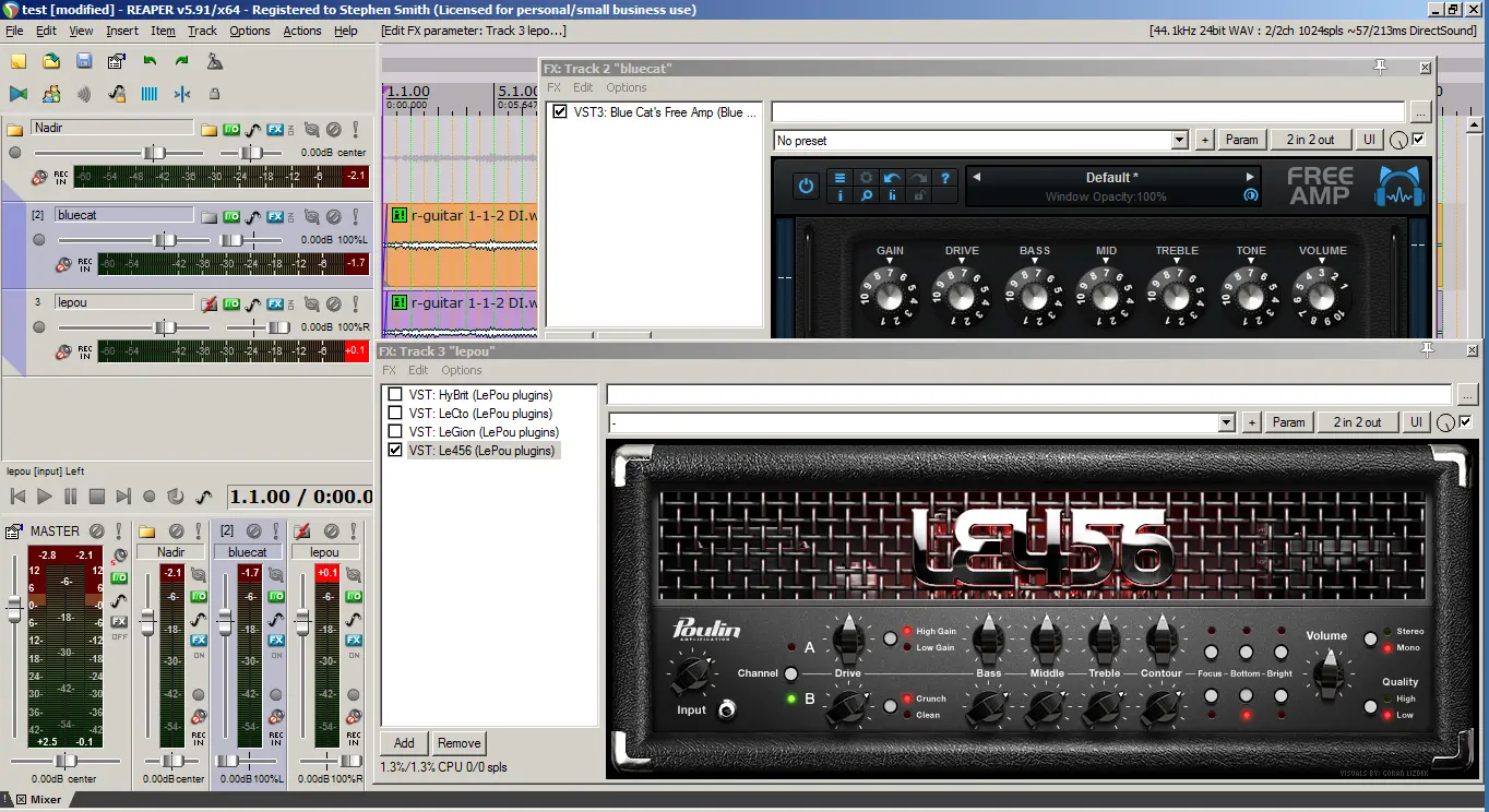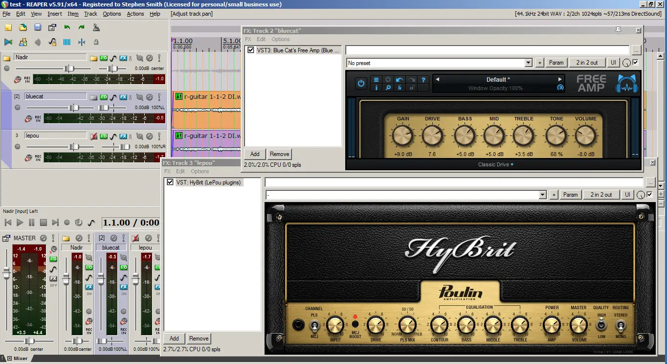 I have several different amp sims so this was a just for the hell of it download. I am honestly not much into the amp modelers (even though I have IK, Waves, NI, several PI , etc) due to, well I have plenty of amps and mics and am able to crank them as I wish. And sims just don't ever seem to have the dynamics. One thing that has always bothered me about sims was that all of them seem to go over the top in simulated "speaker" noise/hum when gain settings are cranked. While I understand the theory of trying to make it sound like a real amp, to me it's just too much of what I don't really think of as a good thing. That said , these sims seemed to have a much reasonable level of this noise. I didn't experience any difference in latency as compared to other sims, in other words no real latency at buffer settings below 256 in the DAW (Harrison Mixbus) on my I5 laptop through 2I2 and driver buffer setting ~5ms. latency was more noticeable once I added a chorus and reverb plug in, and I had to up the buffer in the engine to avoid clicks with the added plugins, though this is usually the case with that laptop and the focusrite, so not related the bluecat stuff. I haven't tried it on my desktop, or even my I7 laptop or ProTools systems yet, but considering the system I used it on was the slowest one I have I was happy to get usable credible sound from a free sim that I wouldn't hesitate to pull up for an impromptu mobile session where no amp/mic was available. Since Steve had squashed and possibly a noisier experience than I did(apparently) I would say that YMMV depending on your system, DAW , etc.