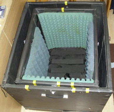 Both boxes needed some decoupling so both in and out are neoprene rubber at various points. The inner box neoprene