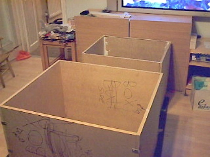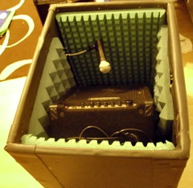 When I first got involved in HR a couple of years ago, there was this strange guy called marioantigod who used to irritate people but he was having a problem of cranking his guitar up loud where he lived and somebody suggested an isocab. At this point {early 2010} I’d never heard of such a thing and did some looking into it. What was interesting was going around the big deal music shops in London’s West end and asking about isocabs........and no one had heard of such a thing. I obviously wasn’t alone. Checking them online, I saw very few existed and of those that did, no one seemed entirely satisfied with theirs. But I didn’t really care, I was intrigued and when I heard someone suggest the idea of a box within a box, I thought that would be feasible. My main concern is the cutting down of noise. I couldn’t see the quality of sound being any worse than anything I’ve already achieved { ! } and despite the points made about how a guitar sounds in the room, I go along with the point that if you’re close miking, it’s what the mic picks up that really matters. Besides which, I like experimenting with sound.......