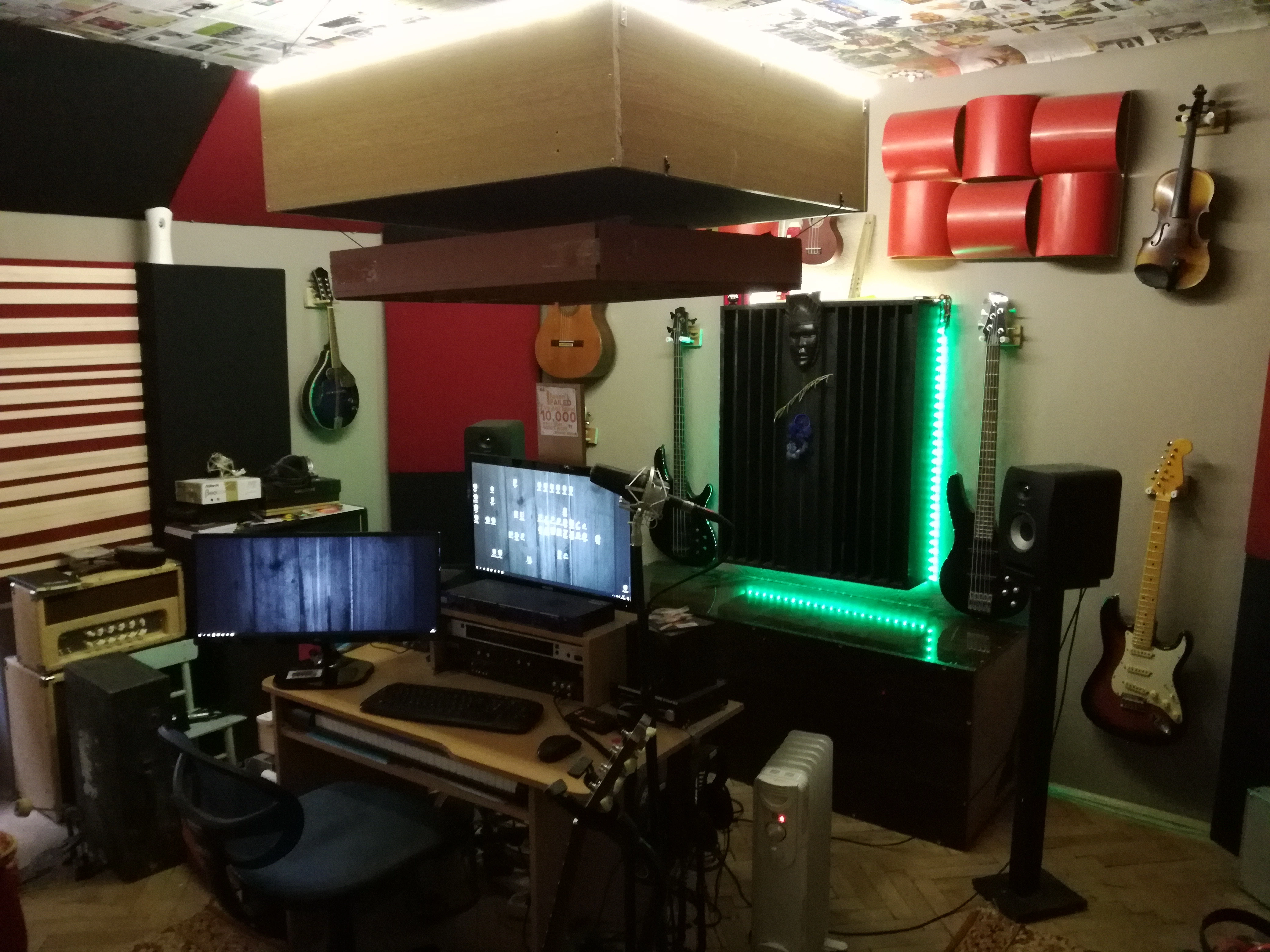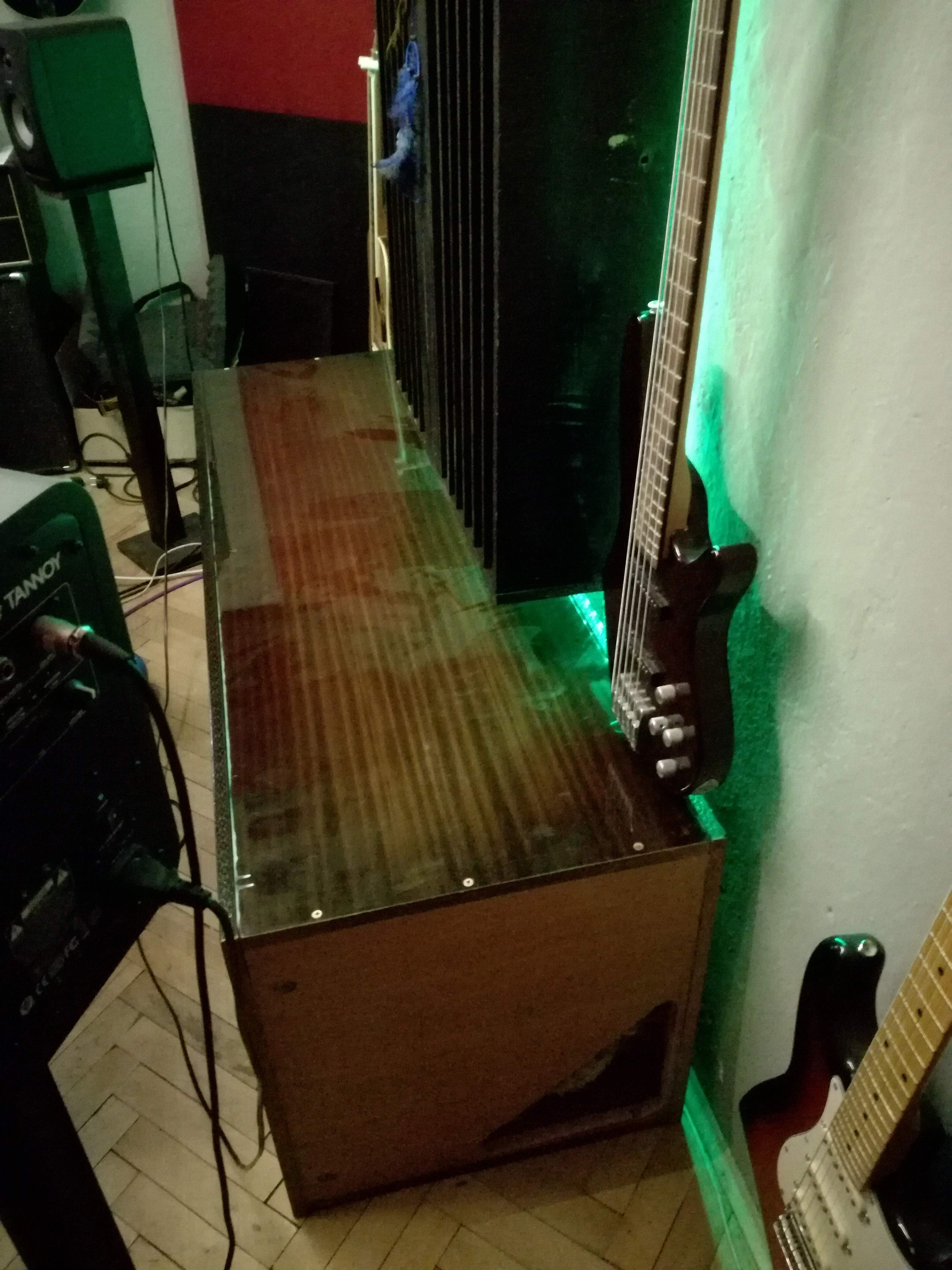 What I made is a well sealed plywood box around 400 litres with a port(hole). I used mh-audios calculator for the size of the port and it is supposed to work at around 38Hz with a Q of 1.5. The resonator is placed in the corner of the room (the room is 4x4x2,5m).