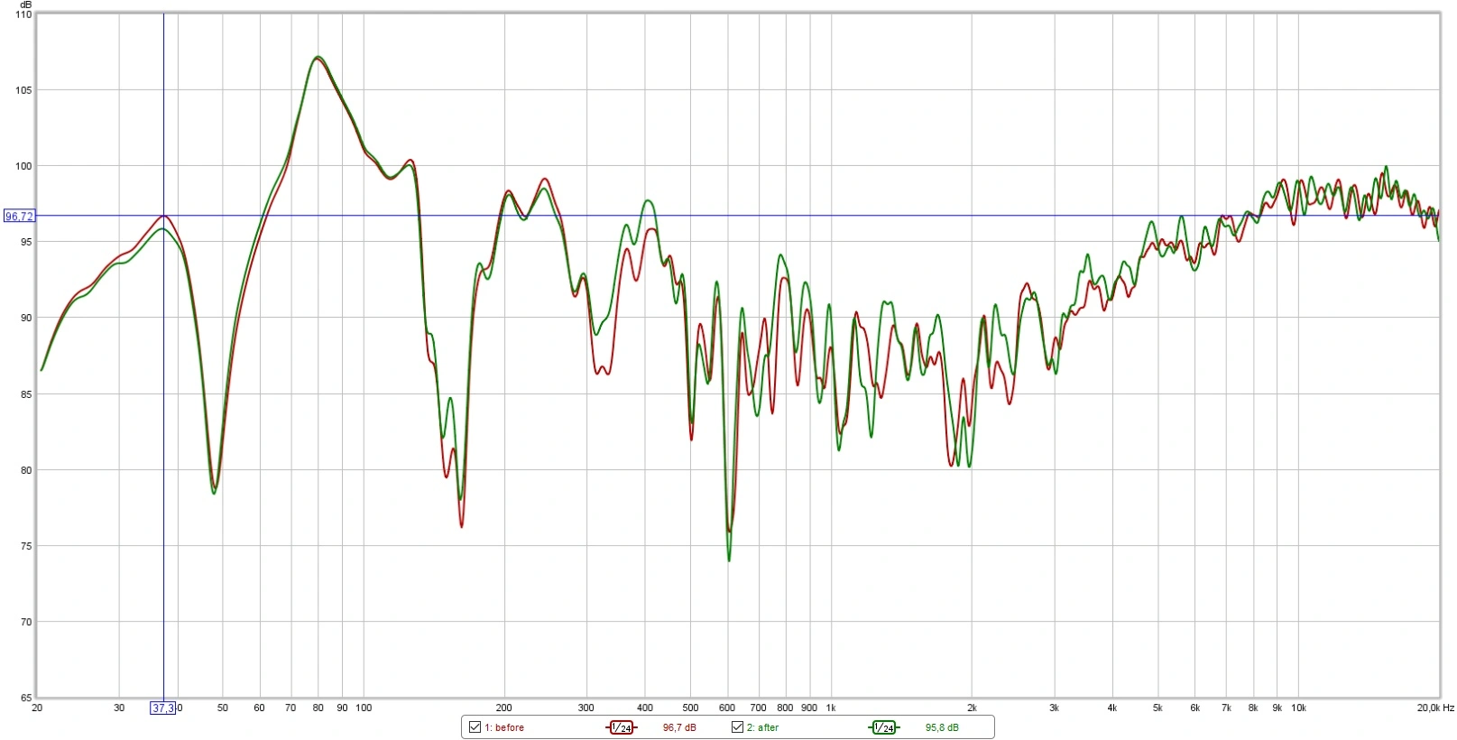 I have some room mode problems around 38Hz so I decided to build a helmholtz resonator to lower the peak.