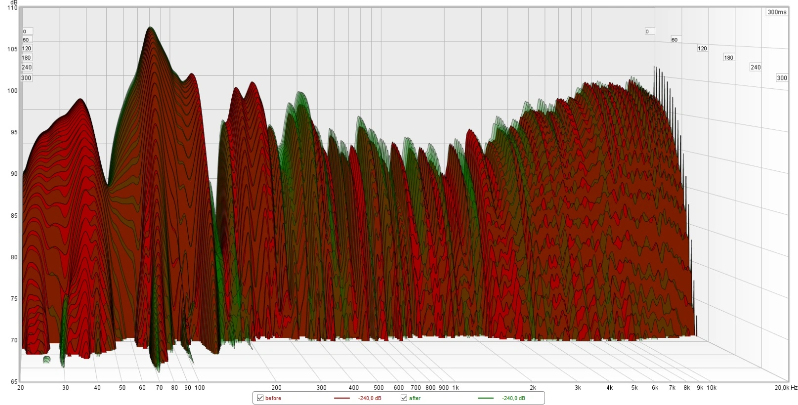 I measured the room response before and after and saw no real difference. (I used REW and ECM8000). I then tryed filling the resonator with wool, first halfways then full but it made no difference.