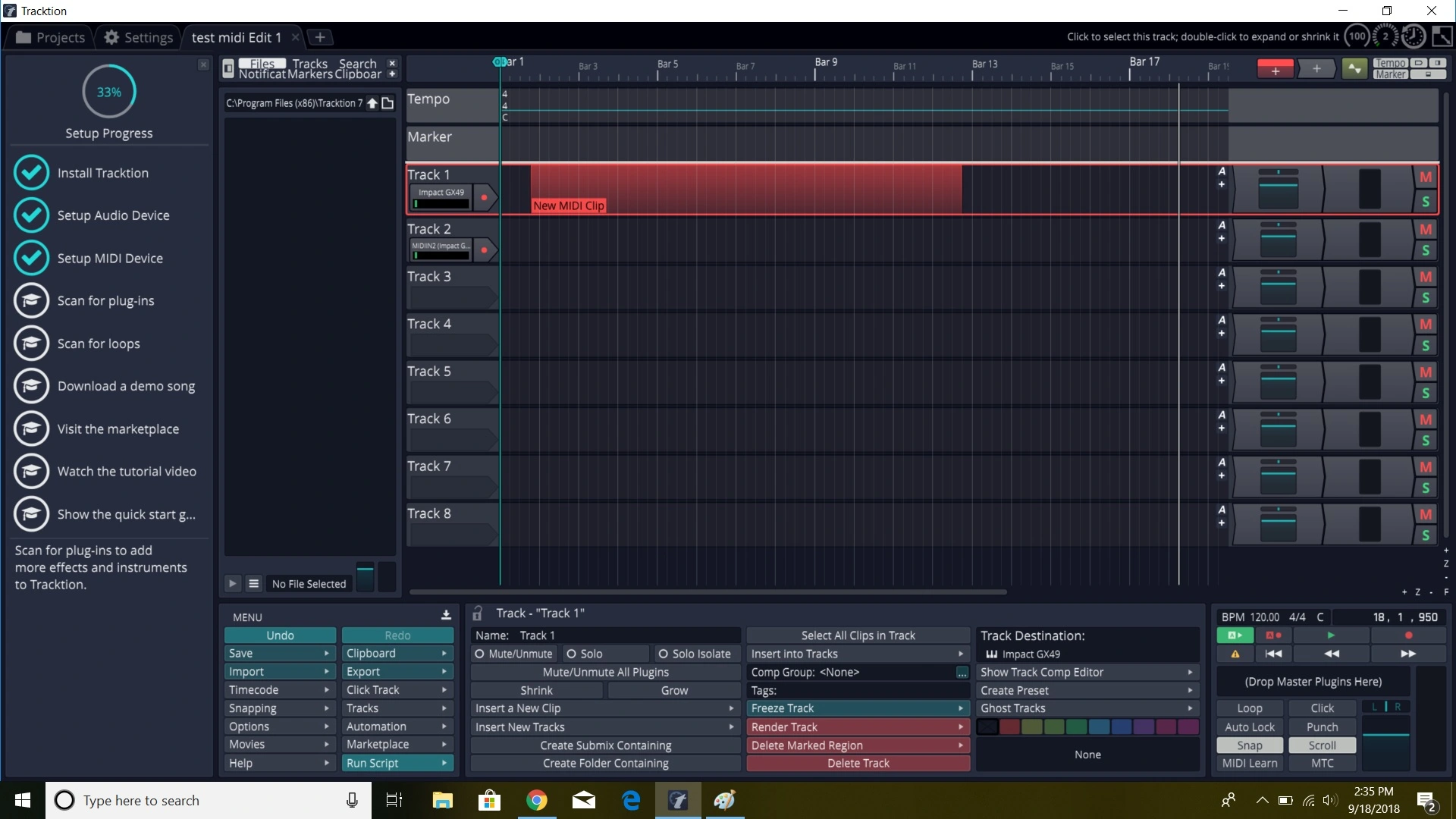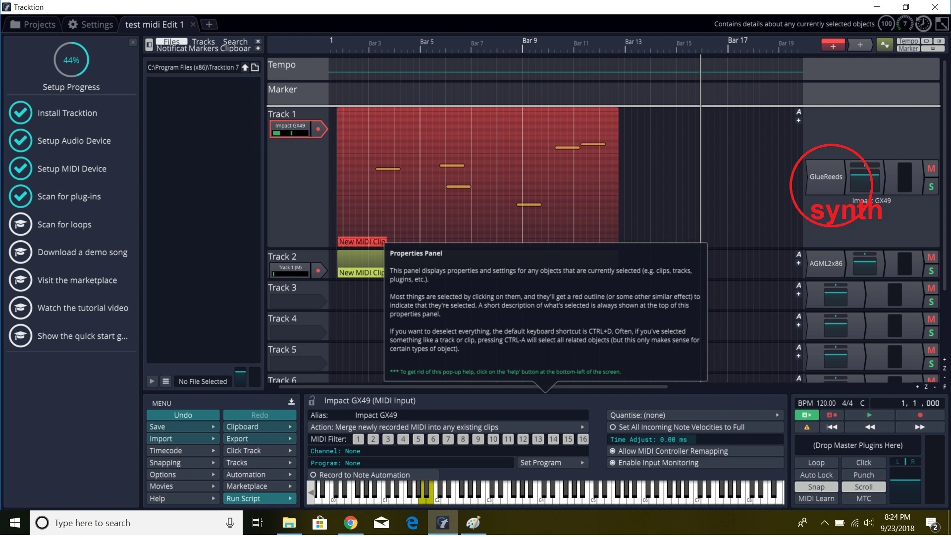 I'm using tracktion and it does recognize that I plugged in the nektar keyboard. I can hit notes and I will see them highlighted in the piano roll. But no sound comes out. I think I will have to add a synth to change the sounds? But right now I just want to hear any sound. I have routed the track to the midi destination although I'm not sure if its the right one. I have 2 options and I don't know why. Impact GX49 or MIDIin2 (GX49). I have already watched the video about using midi in tracktion several times. I have pics but it says I have to post a few times before I can add them :-(