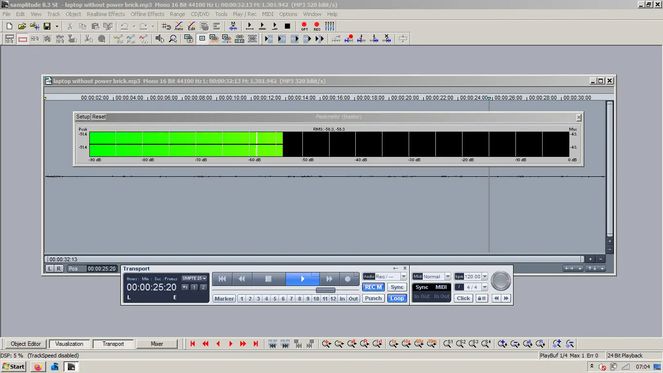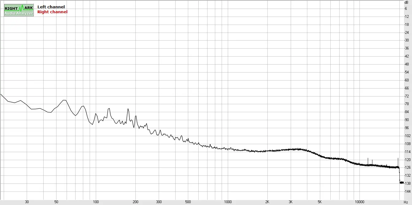 Just for fun, I pulled down RightMark and ran a test on my Tascam interface. Mic input was at 50% which is about where most of my condenser mics are set. This was the spectrum.