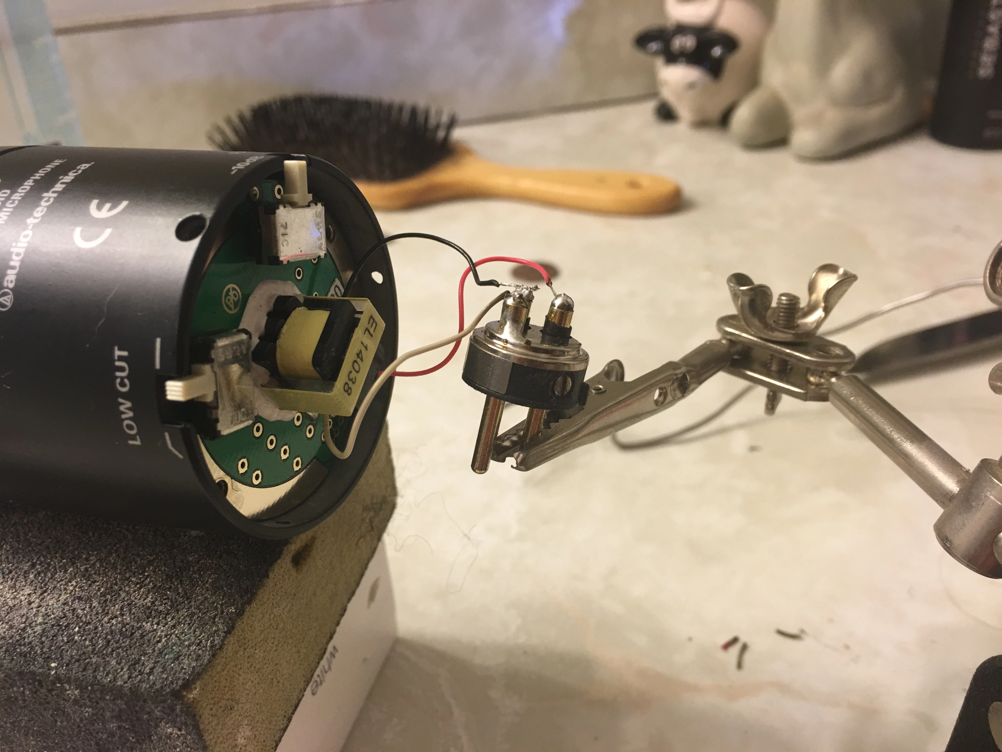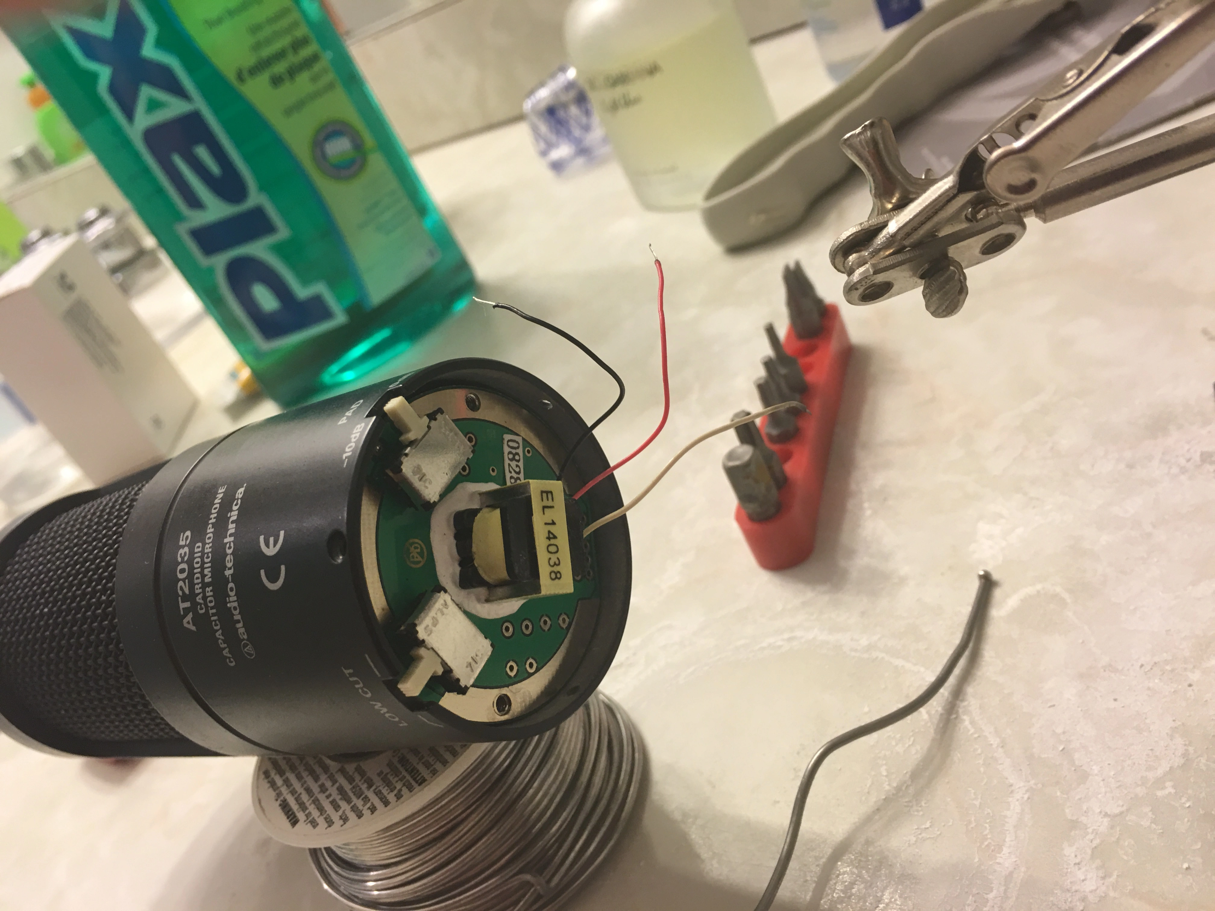 So I was having grounding issues with my AT2035 condenser and I decided to pop it open and look at it. Turns out there was a loose wire connection. While I was fiddling with it the other wires popped off as well. Now I'm not sure what goes where and how to get it working - at all - again.