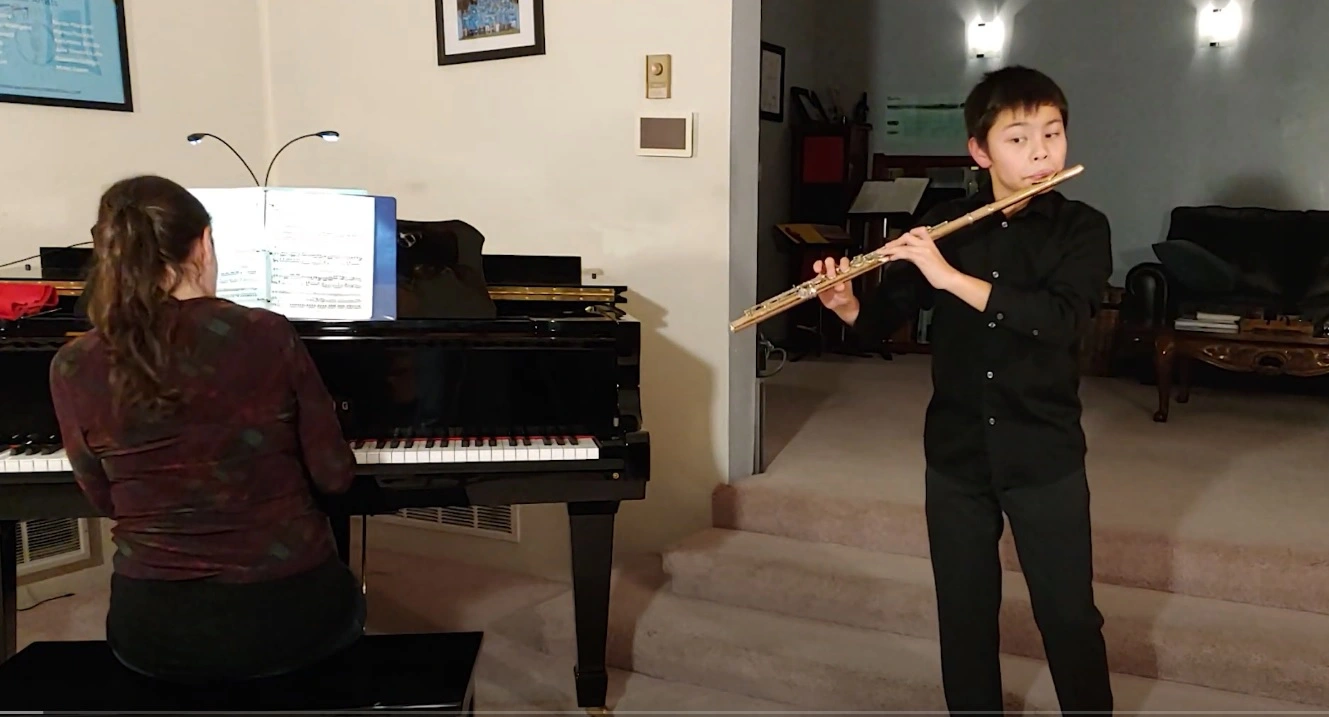 Listening to the recording on the video, the first thing is that you have a fairly lively room. It makes the reverb very short, and gives a somewhat hollow character to the sound. The piano and flute both show the same "space". I don't know if changing rooms is an option, but it would help to have some type of acoustic treatment to tame the reflections.