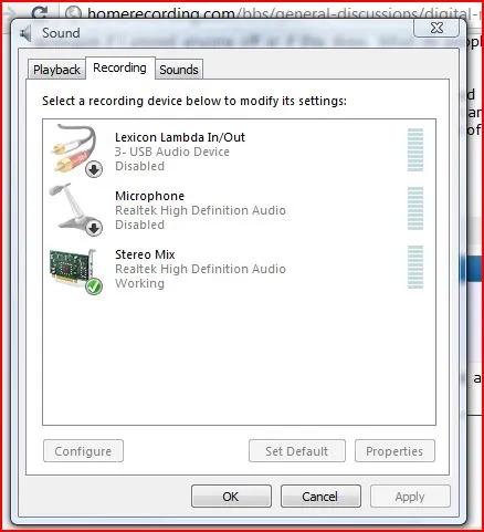 Okay, that helps. The stereo mix in this case is from your internal sound card. It goes through the mixer in Windows which you can see when you open the Properties page. So, I believe you were using ASIO4ALL with your internal soundcard and it was folding the output back into the input because of the Windows Mixer and you could record it. *I'm guessing that's what happened* The external interface does not go through the Windows Mixer and it doesn't get folded back to the input.I feel like the prodigal son. After doing reading and speaking with tech support I realized that the "stereo mix" as shown...This was responsible for allowing me to record general output before i had an external soundcard. Example: Listening to a solo'd MIDI track (triggering a VST) I would simply click new audio track and click record. Ex2: Listening to an audio track, open new audio track and click record (done to record audio with effects to cut CPU use as you know).