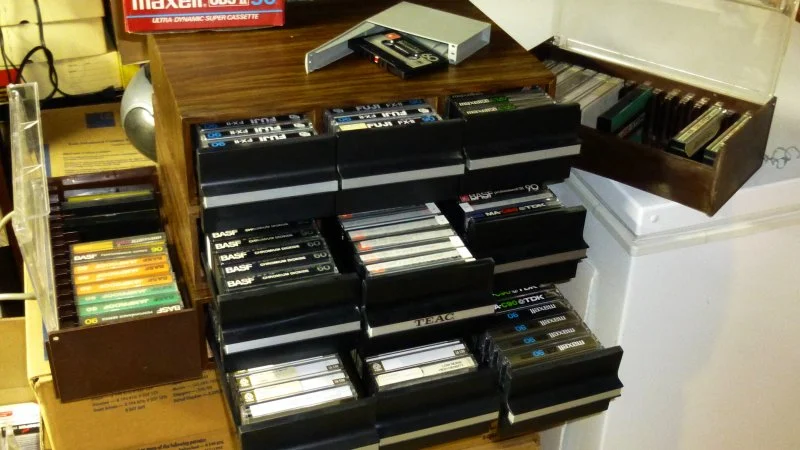 RE: sticking them in a shoebox: I didn't use shoeboxes. But I do have a bit of experience with cassettes. Here's part of my collection , over 120. BASF Chrome, Maxell UDXL and TDK SA, Metal, Fuji FX. Scotch Ampex, Memorex, I've had them all. I've had the pads fall off the pressure piece. Memorex used foam rubber for a while which disintegrated. I've had them bind and accordion the tape until it stopped. Anything of special value has been dumped to digital. I've kept the cassettes because, basically, I'm a pack rat. I hate to throw things away. I still have the deck they were recorded on, and it works.. sort of. The rewind belt dissolved, but the drive belt is OK. I'm under no illusion that they are the ultimate in archival quality.