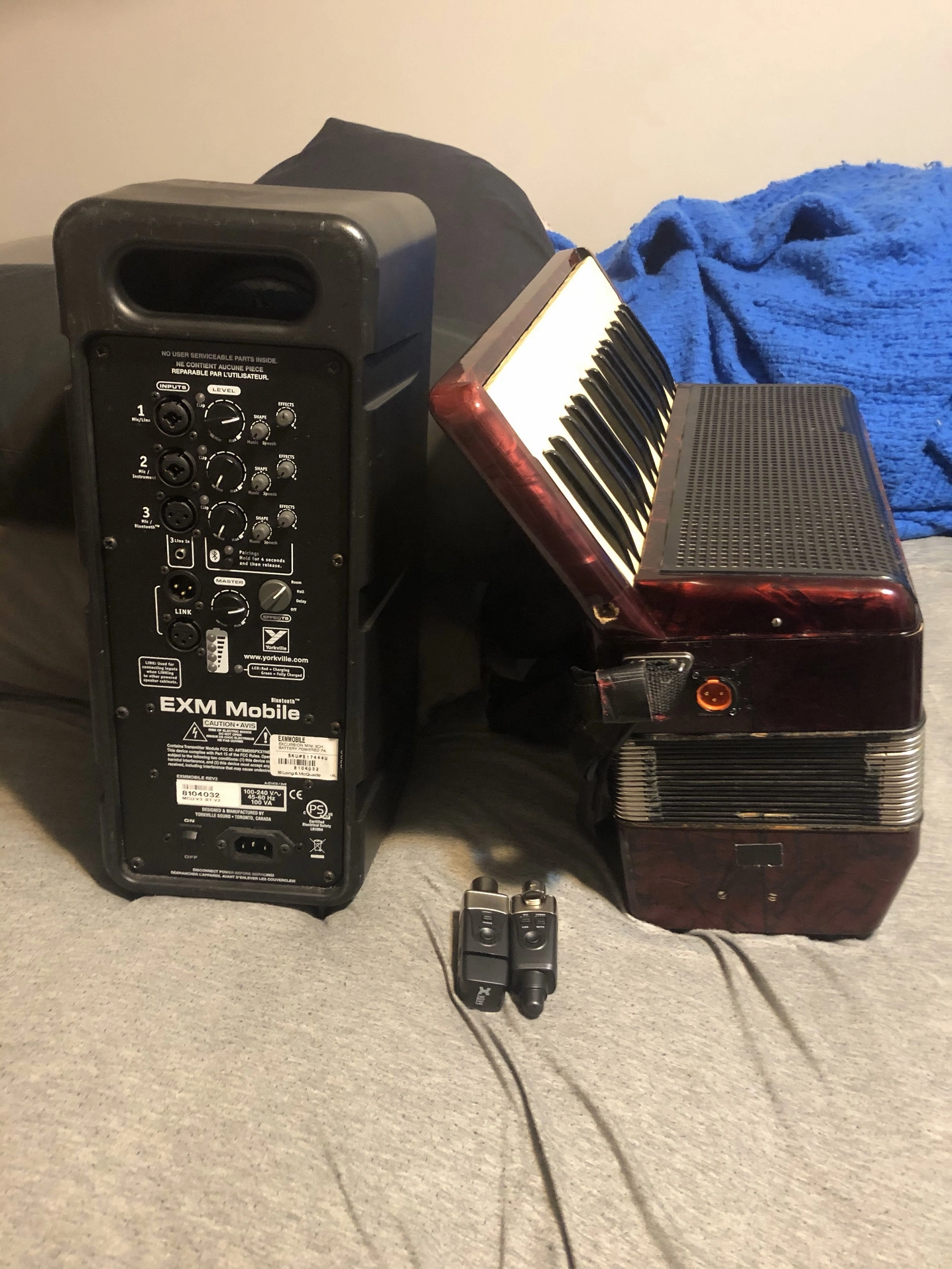 Now...the problem that has arisen is that my bellows have since failed and I am having to use a different accordion. The issue is that an SM58 will not fit inside, it is very close but no cigar (way more reeds in this other accordion).