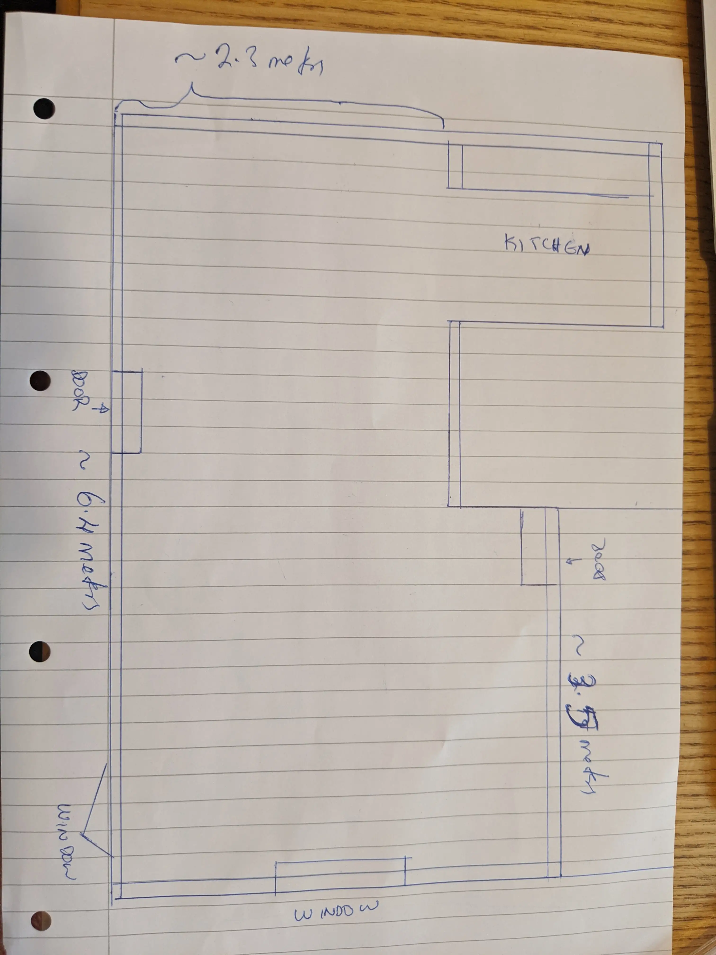 My biggest difficulty from my research so far is how to deal with the window, I can't block it as it has to be able to open, but on the other side there is the kitchen, which I assume the lack of a contiguous wall on the kitchen side in one side would create unwanted noise