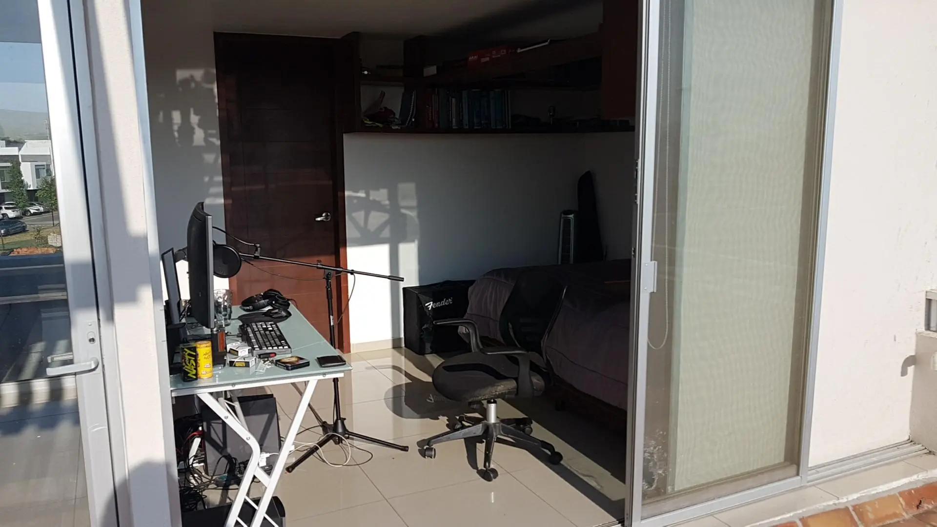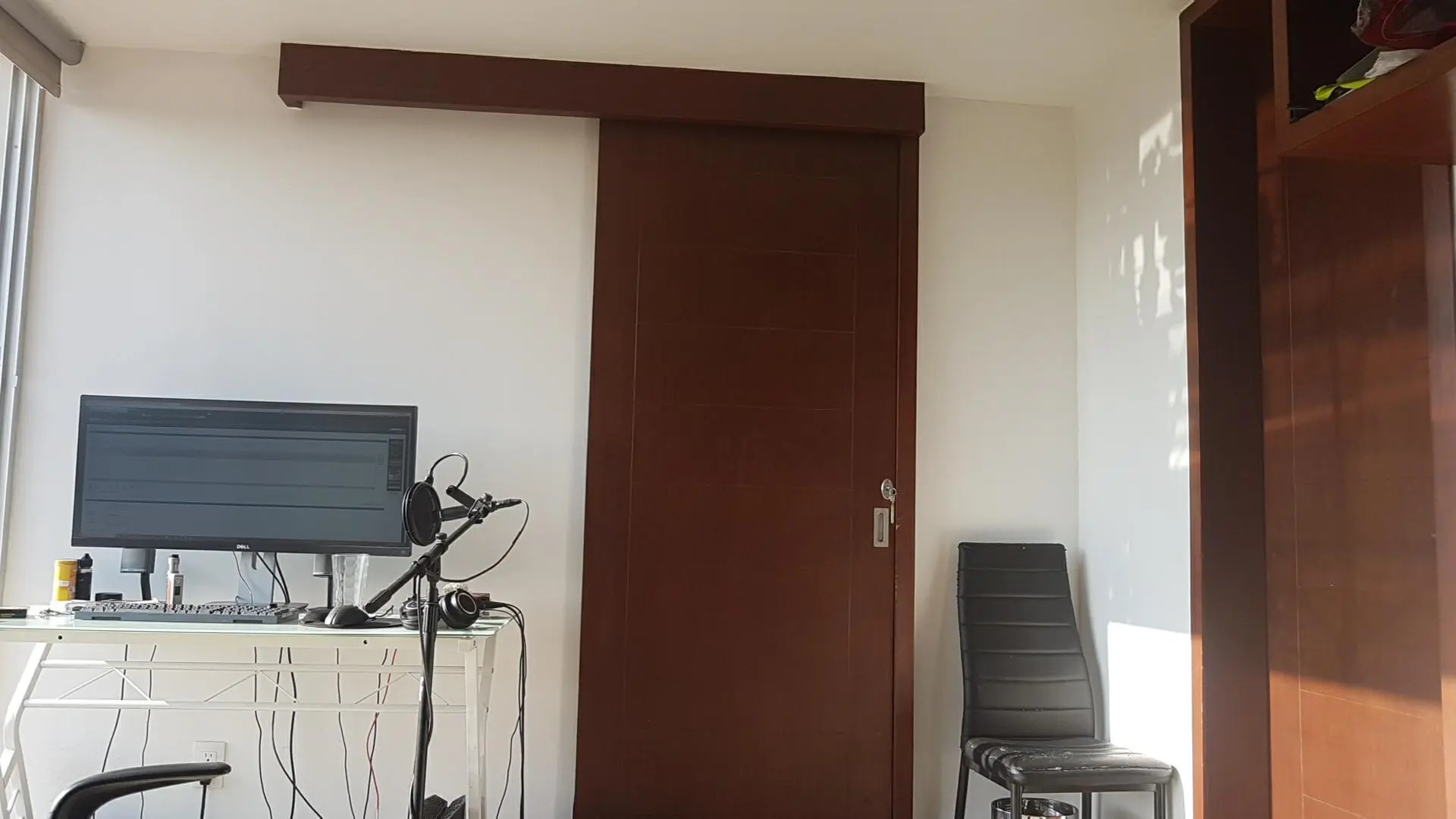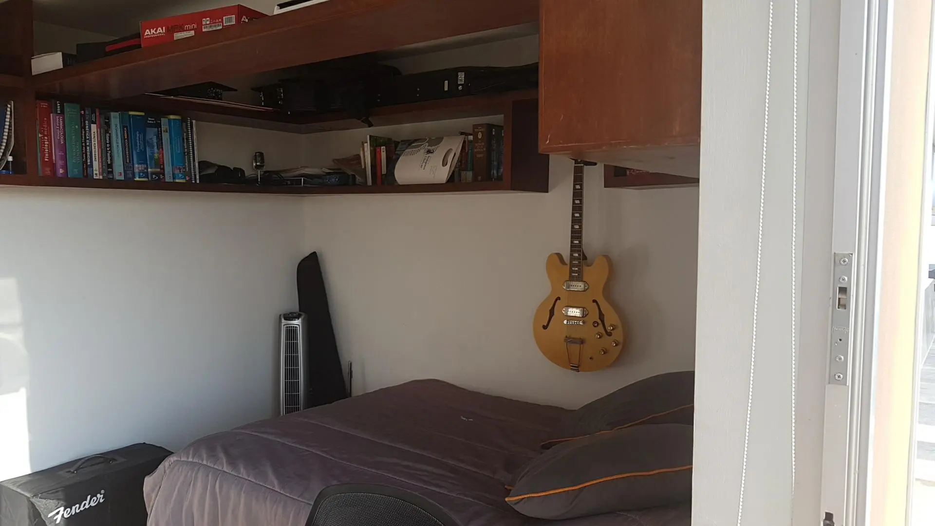 So...I would cover most of the wall surfaces...maybe 75% with broadband trapping..and then maybe a couple of deeper LF-only traps in the corners (like where the chair is and at the foot of the bed, maybe some kind of triangle wedge, since you don't really have much room in there...and/or something in the corners where the walls meet the ceiling. The bed is actually going to help you...but of course, it sucks up a lot of your space.