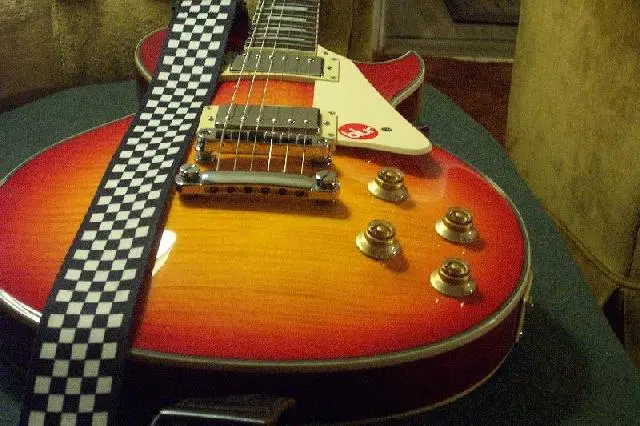Around Saturday afternoon, me and my friend just started jammin when he busted one of his bass strings. He didn't have anymore on him (of course!) and his car was in the shop, so I ran him down to the guitar shop which is only about a 5 minute drive from my apartment. Walking in, I had the mindset to only get a pick for myself since mine are all worn down to dull nubs and there I saw her. As soon as I walked in and turned my head, it was like this burst of sunlight had blown through dark clouds during a thunderstorm and stopped all the rain! :eek: It was a ARBOR Les Paul Classic "Copy" with a beautiful polished cherry sunburst finish, silver humbuckers and dark gold knobs. Even more-so what caught my eye was the price tag, rather not how expensive but how much it was marked down! They had it listed as $400, but reduced it down to $230!