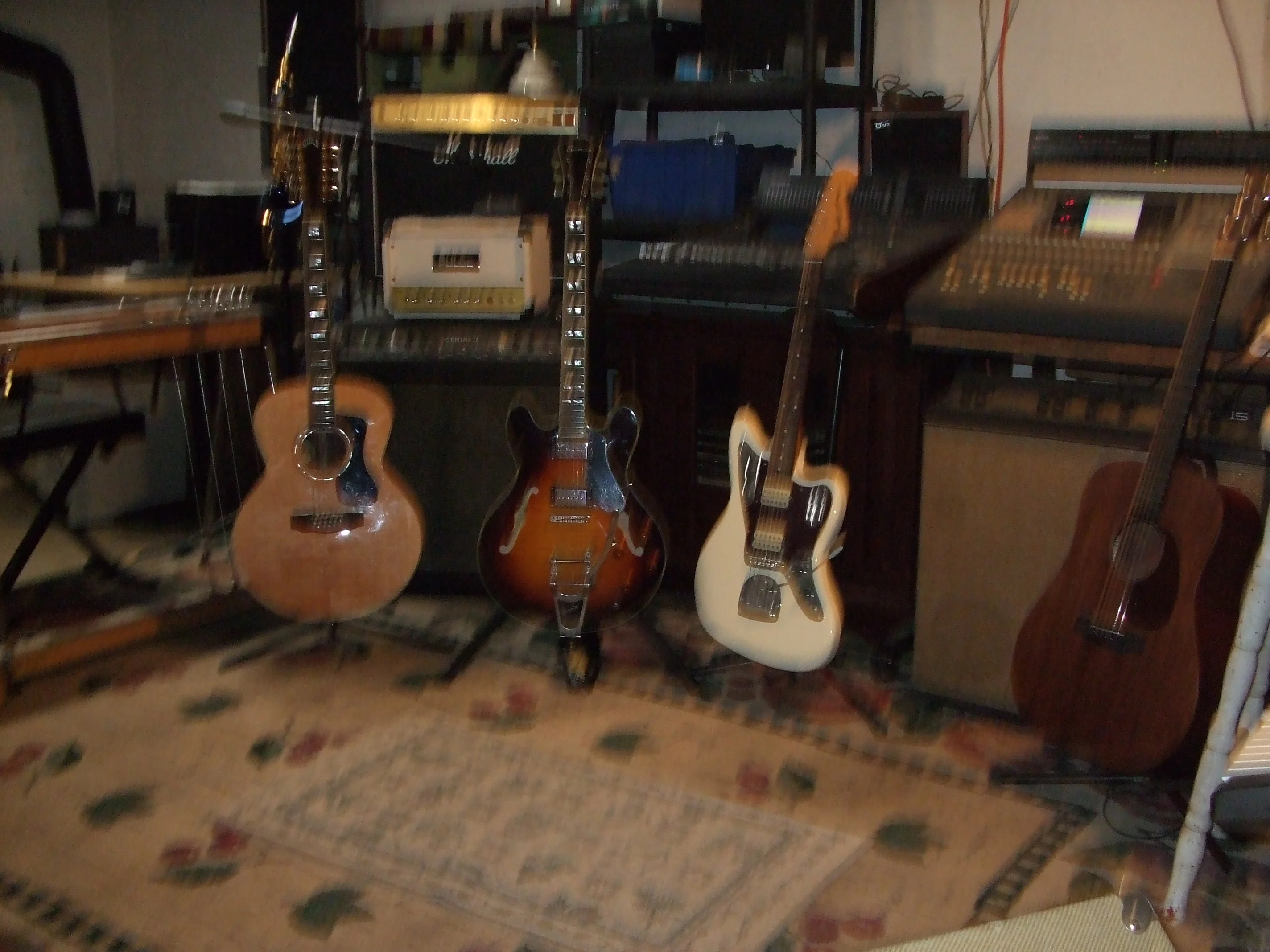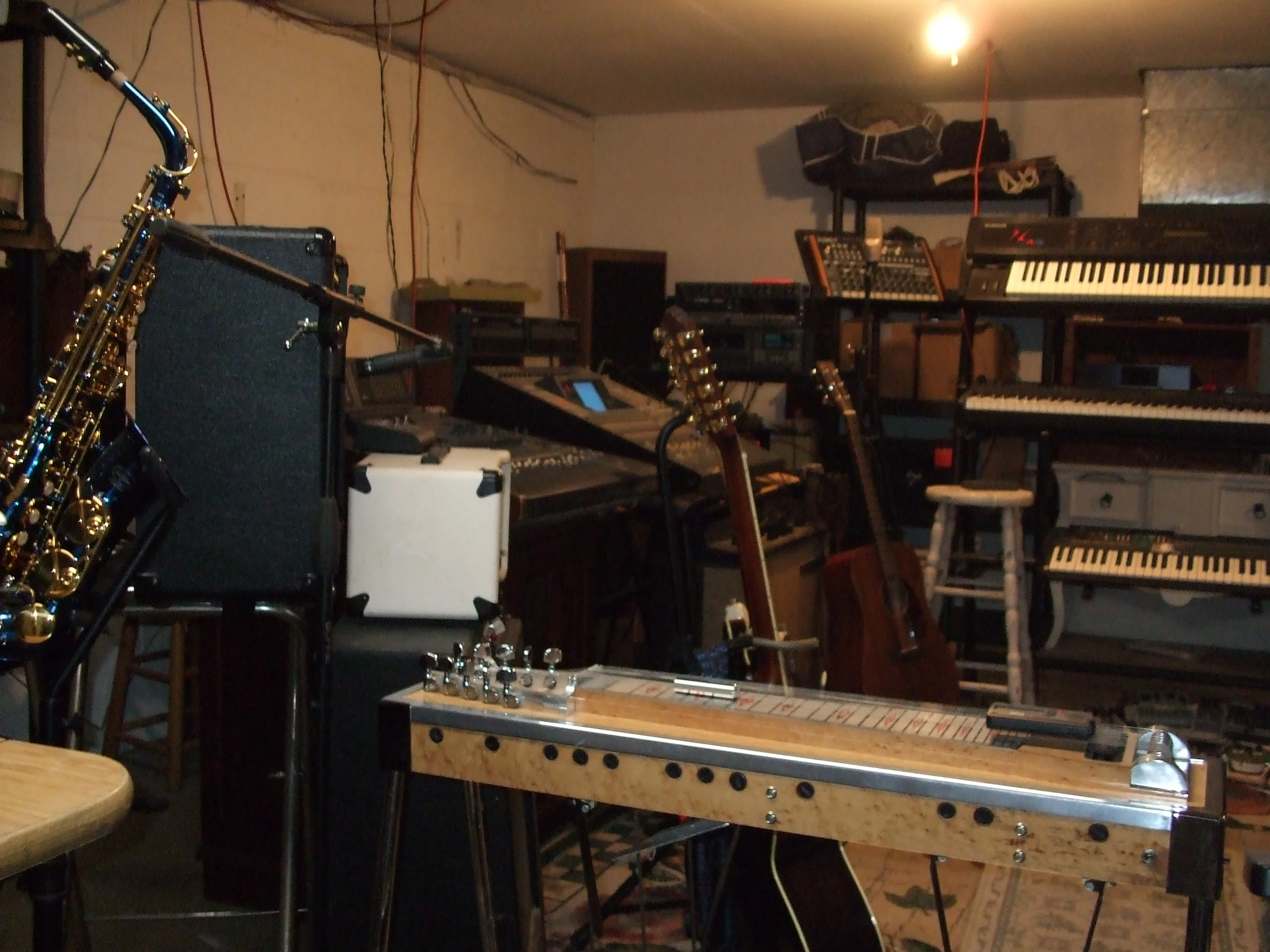 Nicely done dogooder. Looking at your stuff I was trying to figure out what kind of music you play. The Eastman and sax make me think jazz but the pedal steel and acoustics make me think country. Then there's the Marshall and Jag...