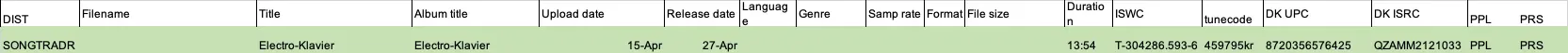In the UK - you would submit details of the recording to PPL - they need recording dates, titles, running time, etc