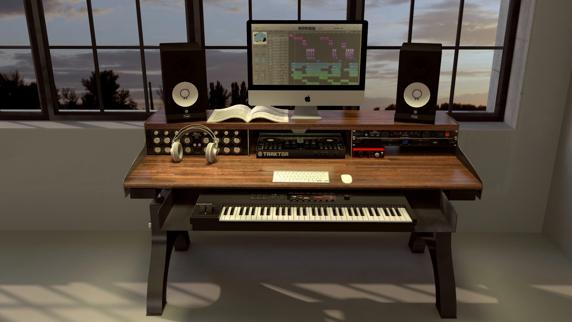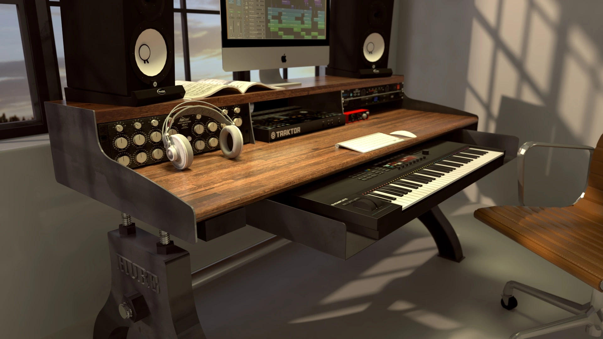 Hello, I am new to the forums! I started recording music for fun when I was 16. I am 46 now and just getting back into it. A lot has changed with computers. Bought a NI S61 keyboard with a giant sound pack. Wow it's fun and amazing what you can do with it. So I am making a studio desk for that and thought I'd share a sneak peak at the concept. Would LOVE to hear any feedback you guys have, good and bad! My company makes the best industrial furniture around, and this table base seems perfect for my desk...