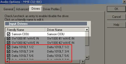 Sorry for dummy question, but I have never touched USB multitrack interfaces. I am looking for USB multitrack recording interface (with 4 or more separate analog inputs) what will appear as separate Wave (MME) Devices in Windows XP/7. Multiple inputs via ASIO/GSIF/etc. will not work for me, because I am using some proprietary software what supports only Wave devices as input sources. I can't use another software, so it's a mandatory requirement. Therefore, I need interface which will give me something like this: