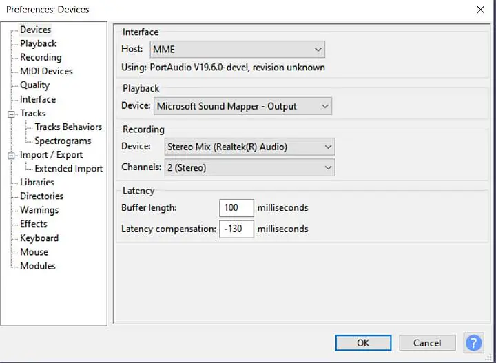 Most software will list the buffer in sample size. I don't know why Audacity using milliseconds, but that's what was listed.