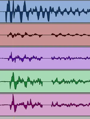 The top channel is an audio input from the interface, and the four audio channels below are from the adat input (coming from the preamp).